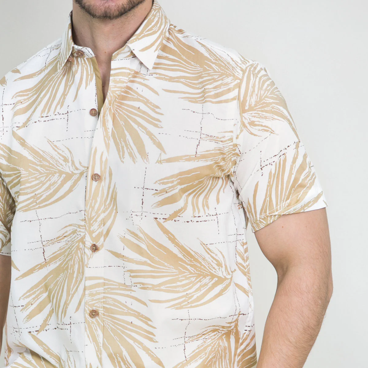 Camisa Regular Estampada Beige Medio – Kosta Azul