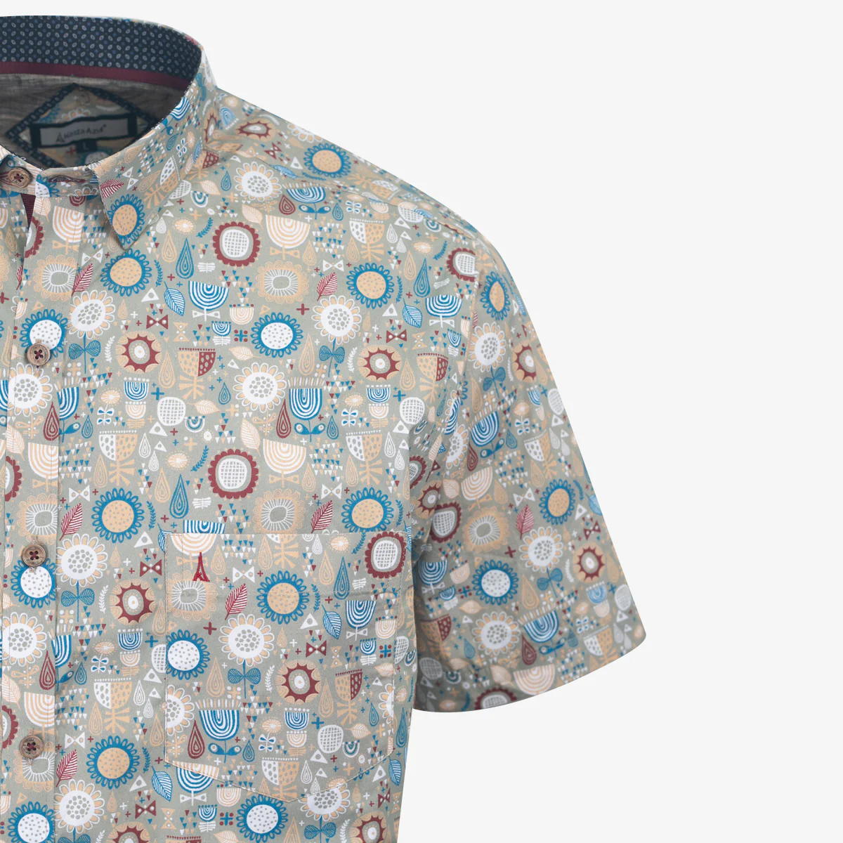 Camisa Regular Manga Corta Estampada Café Medio – Kosta Azul