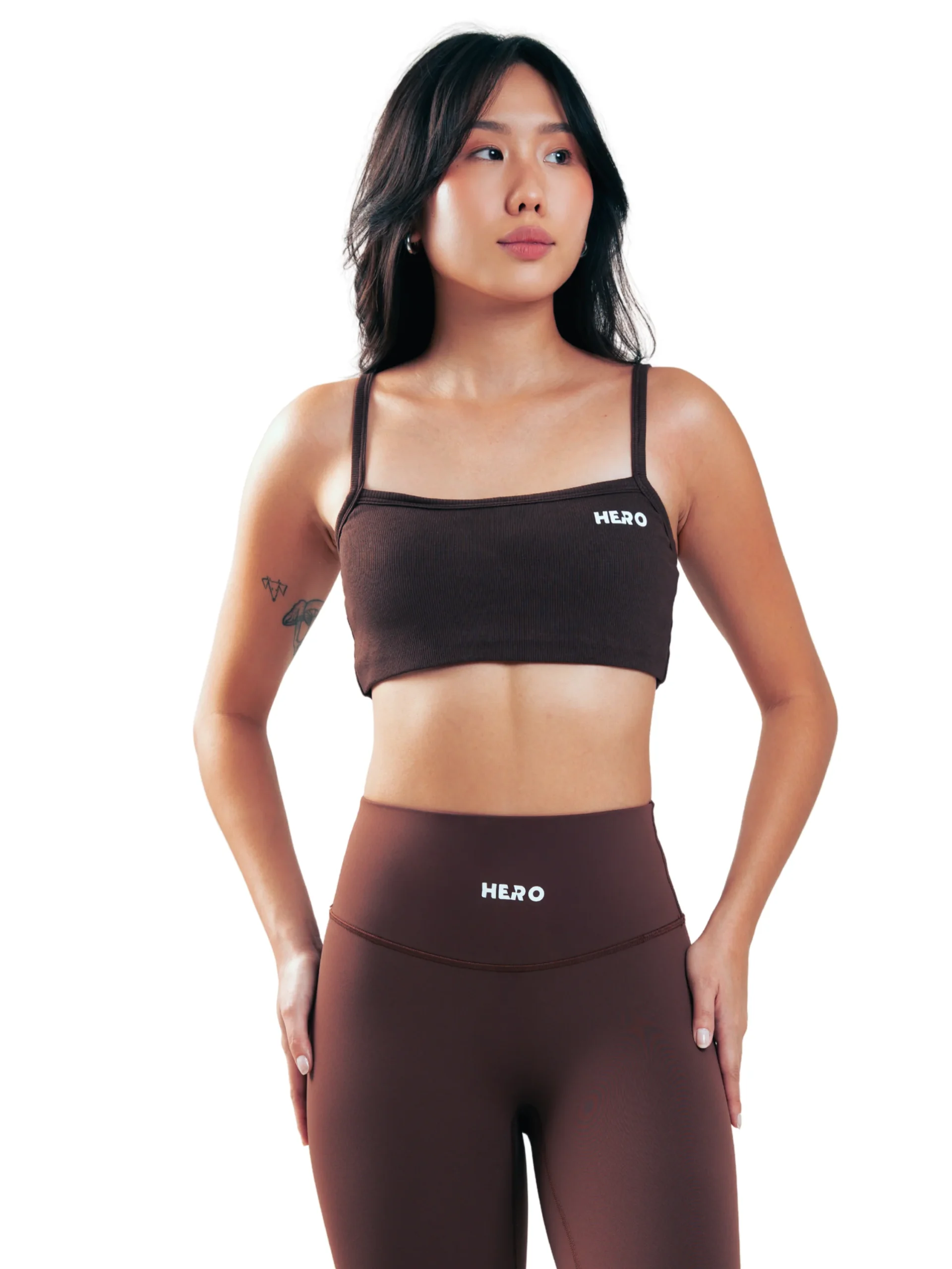 CONJUNTO TOP Y LEGGINS DESCOTADO HERO MARRON