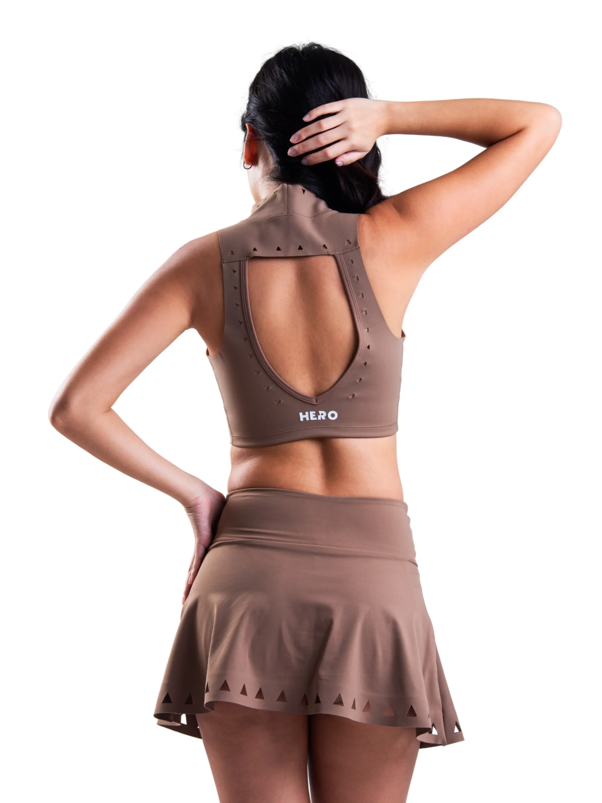 CONJUNTO TOP Y FALDA TRIANGULAR HERO MARRON