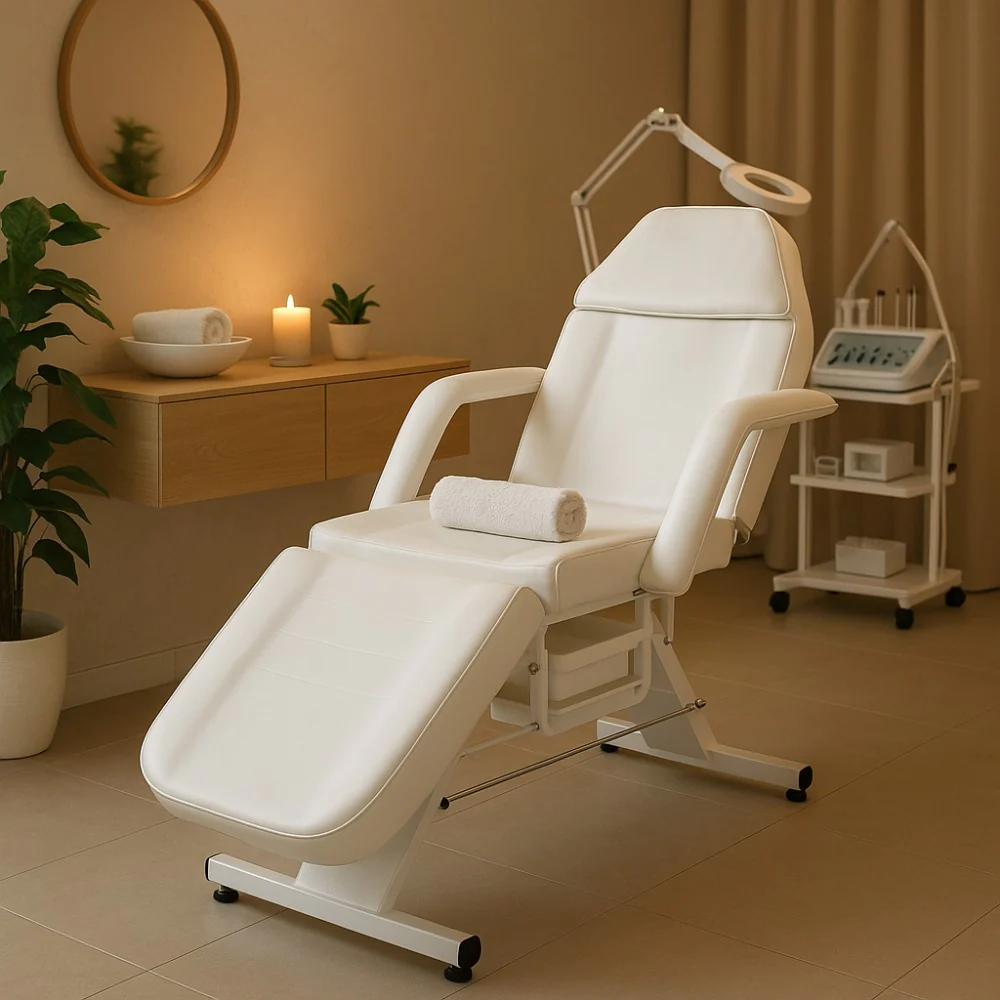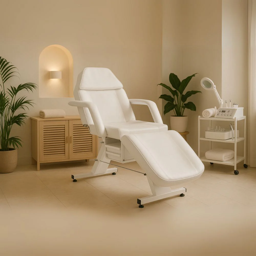 Camilla Sillón Estética regulable con agujero facial blanco