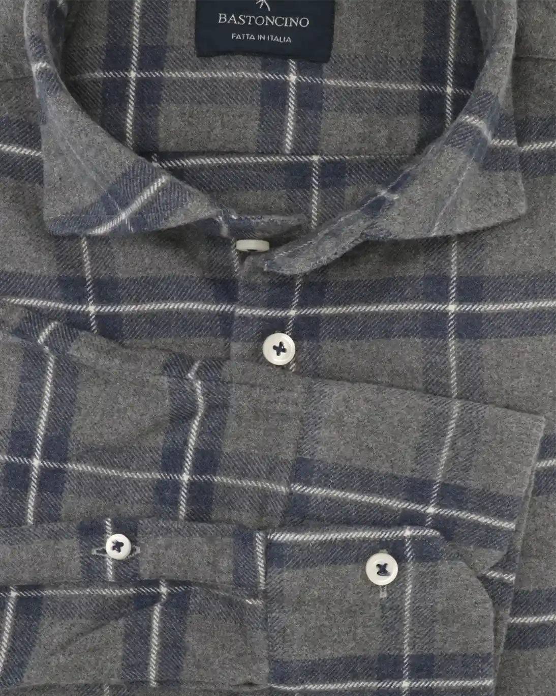 CAMISA ESCOCESA GRIS Y AZUL BASTONCINO