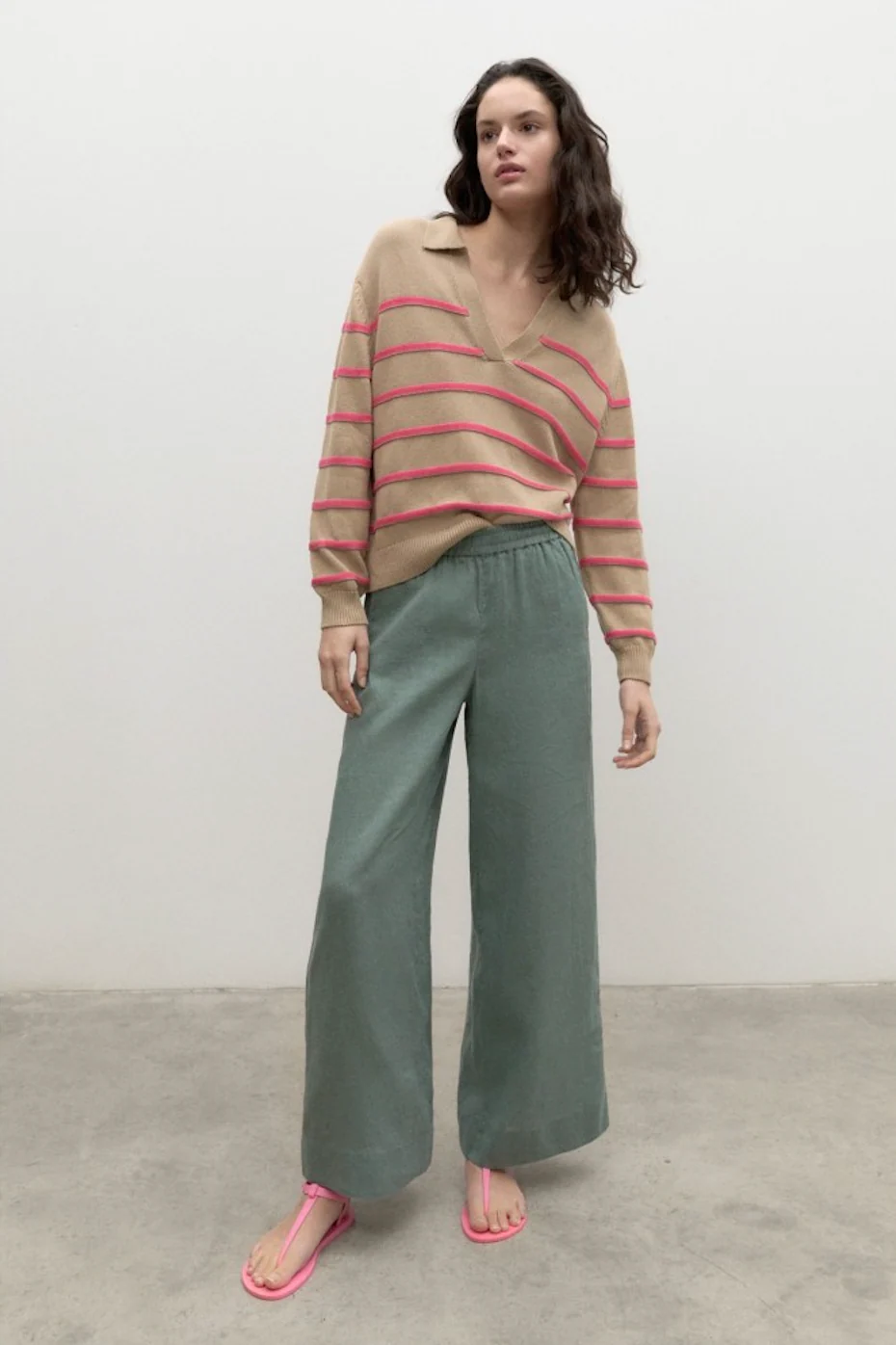 JERSEY DE CUELLO DE PICO DE ALGODÓN MONOCOLOR