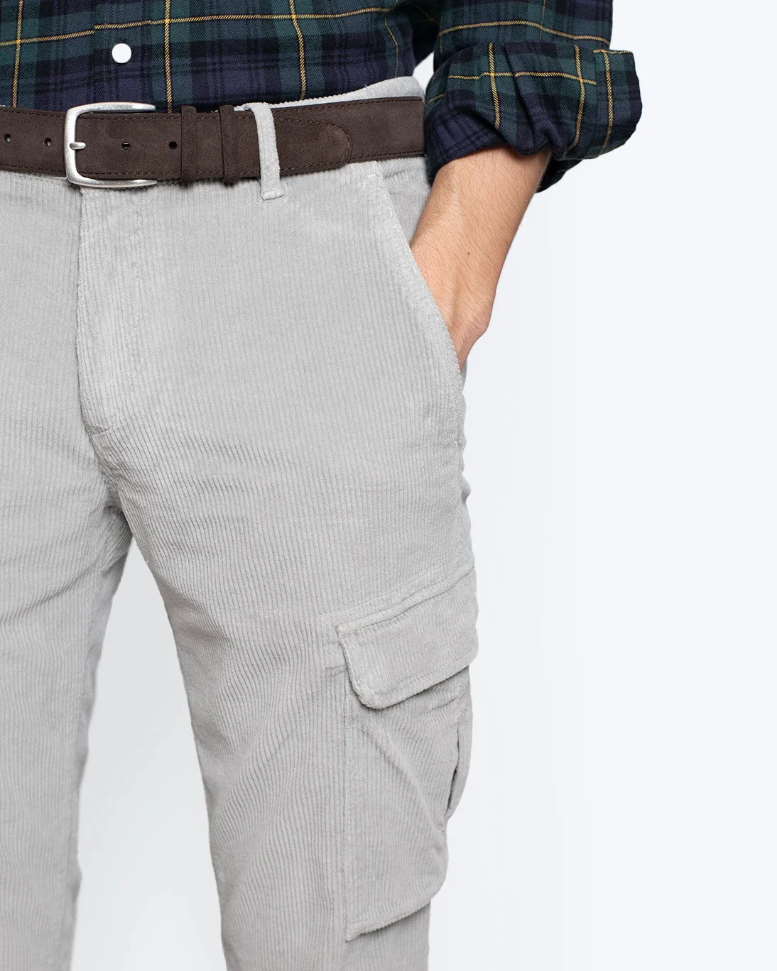 PANTALÓN CHINO CARGO DE PANA GRIS 40WEFT