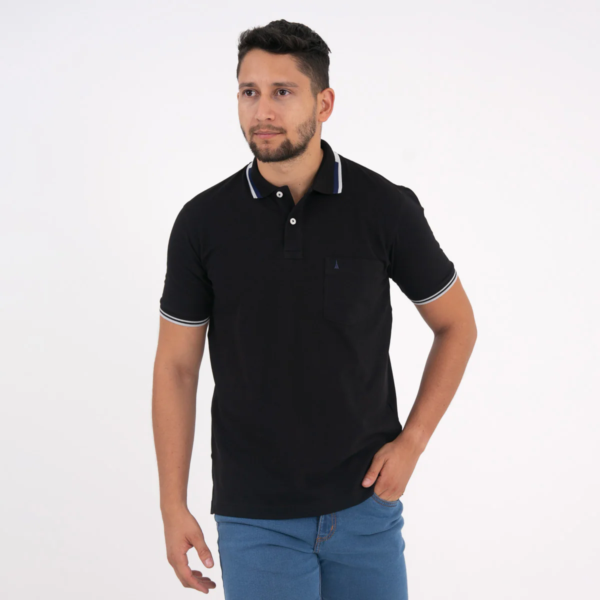 Polo Regular Negro con Bolsillo – Kosta Azul