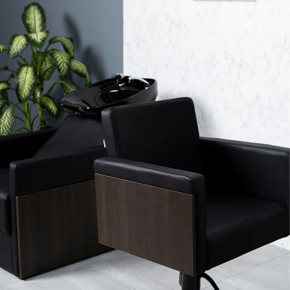 Sillón de tocador Rustik negro madera y polipiel con bomba hidráulica