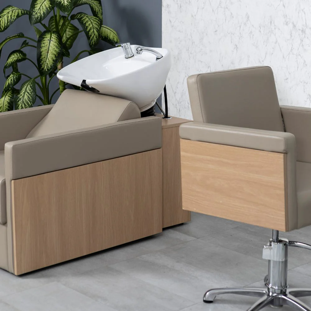Sillón de tocador Rustik beige madera y polipiel con bomba hidráulica