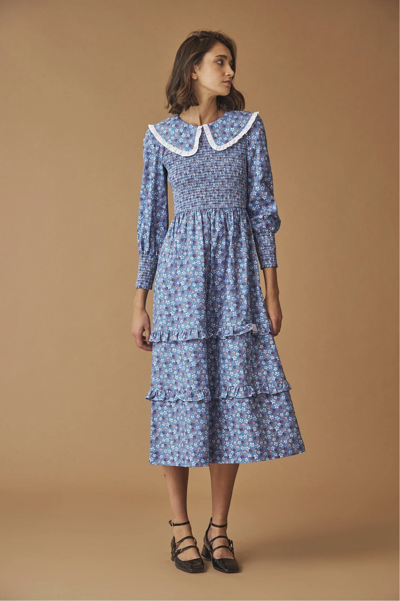 VESTIDO MIDI AZUL CON VUELO