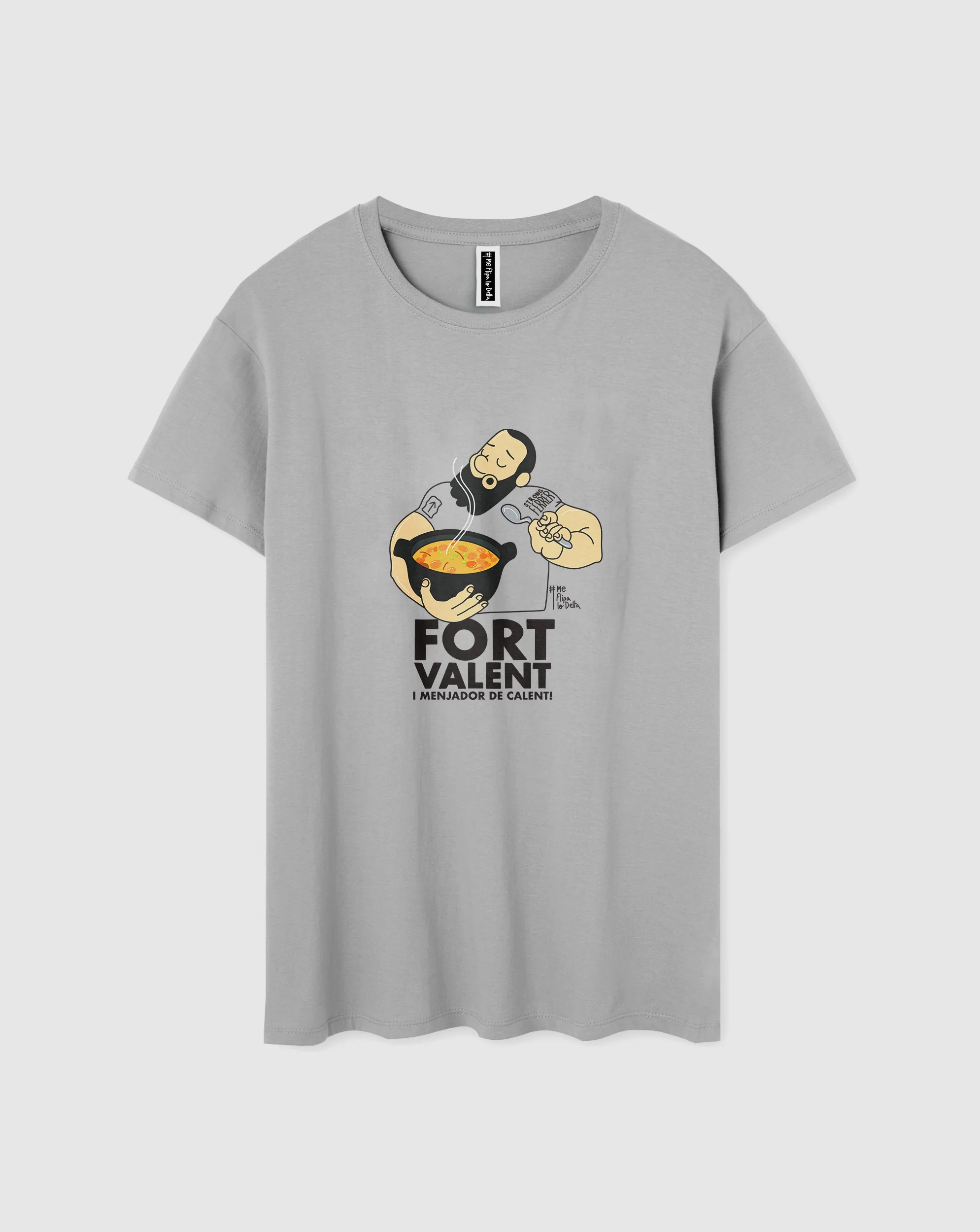 Fort, valent i menjador de calent (¡Fuerte, valiente y comedor de caliente!) el lema que mejor representa al triple campeón de España de strongman, ahora también en tu camiseta.