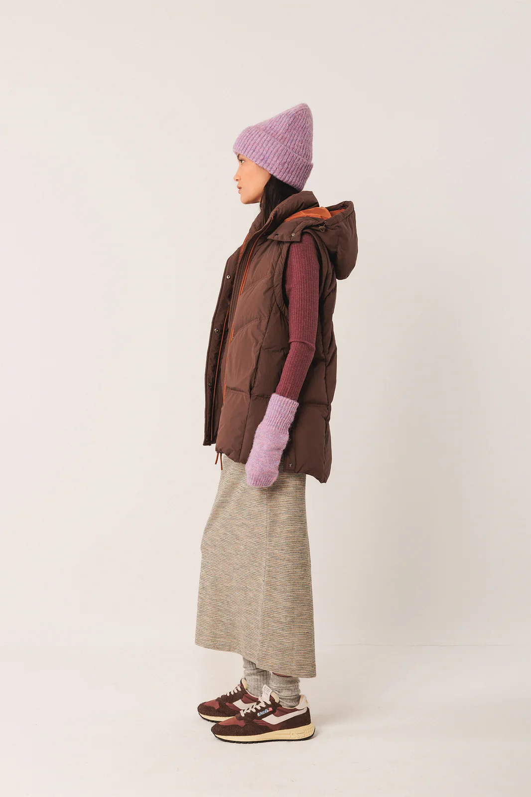 • Cintas interiores que permiten colgar el abrigo a los hombros