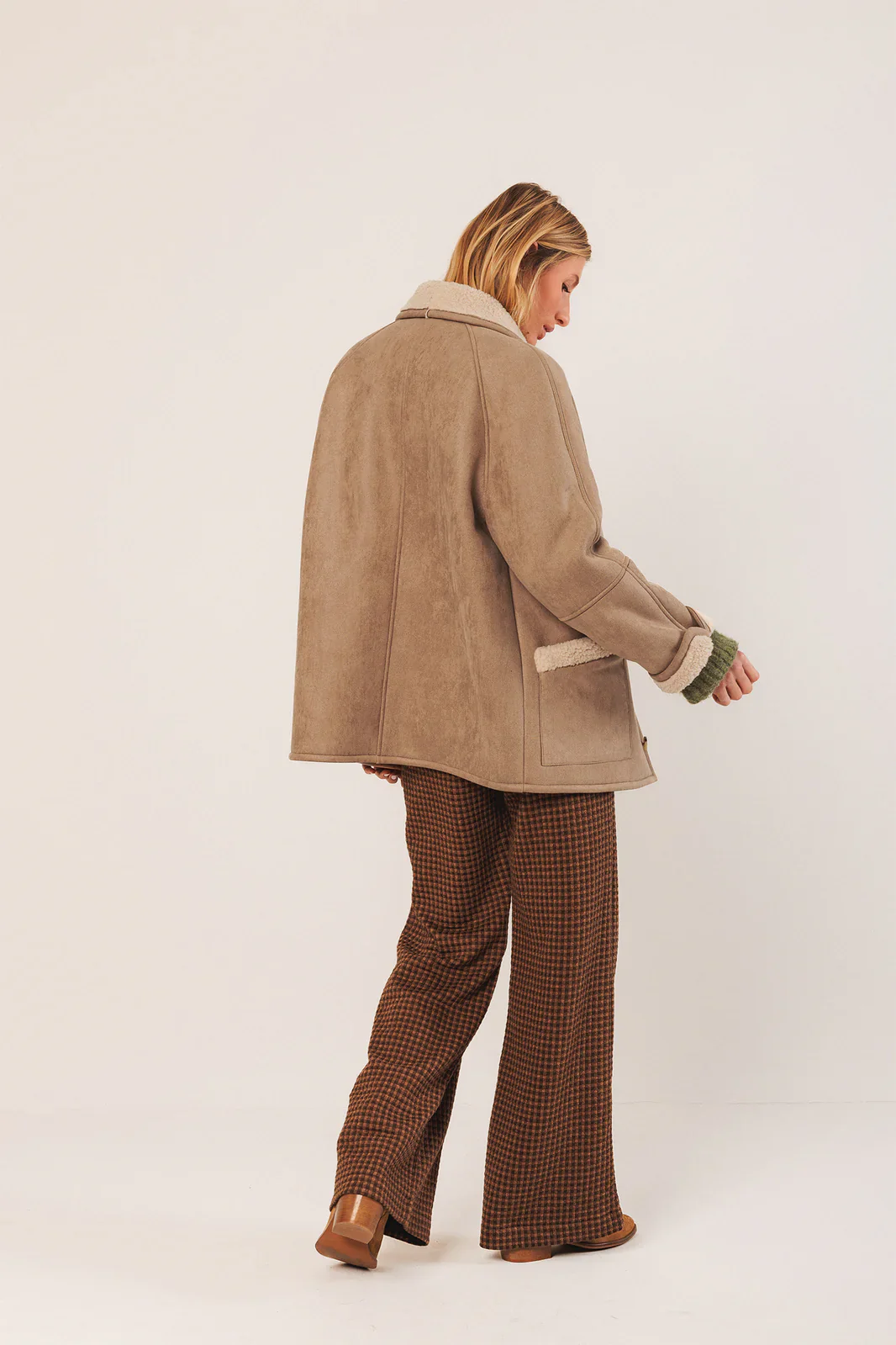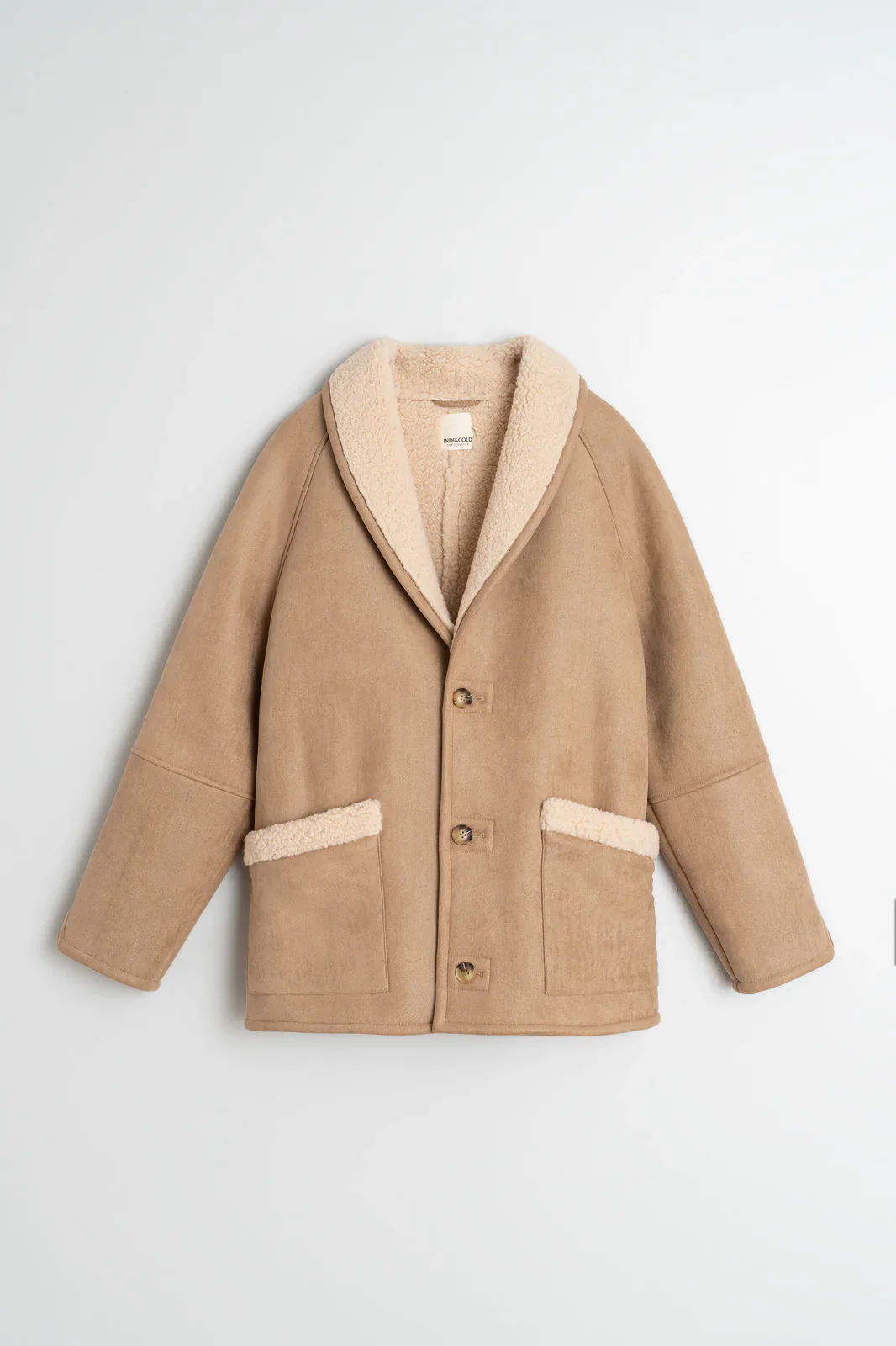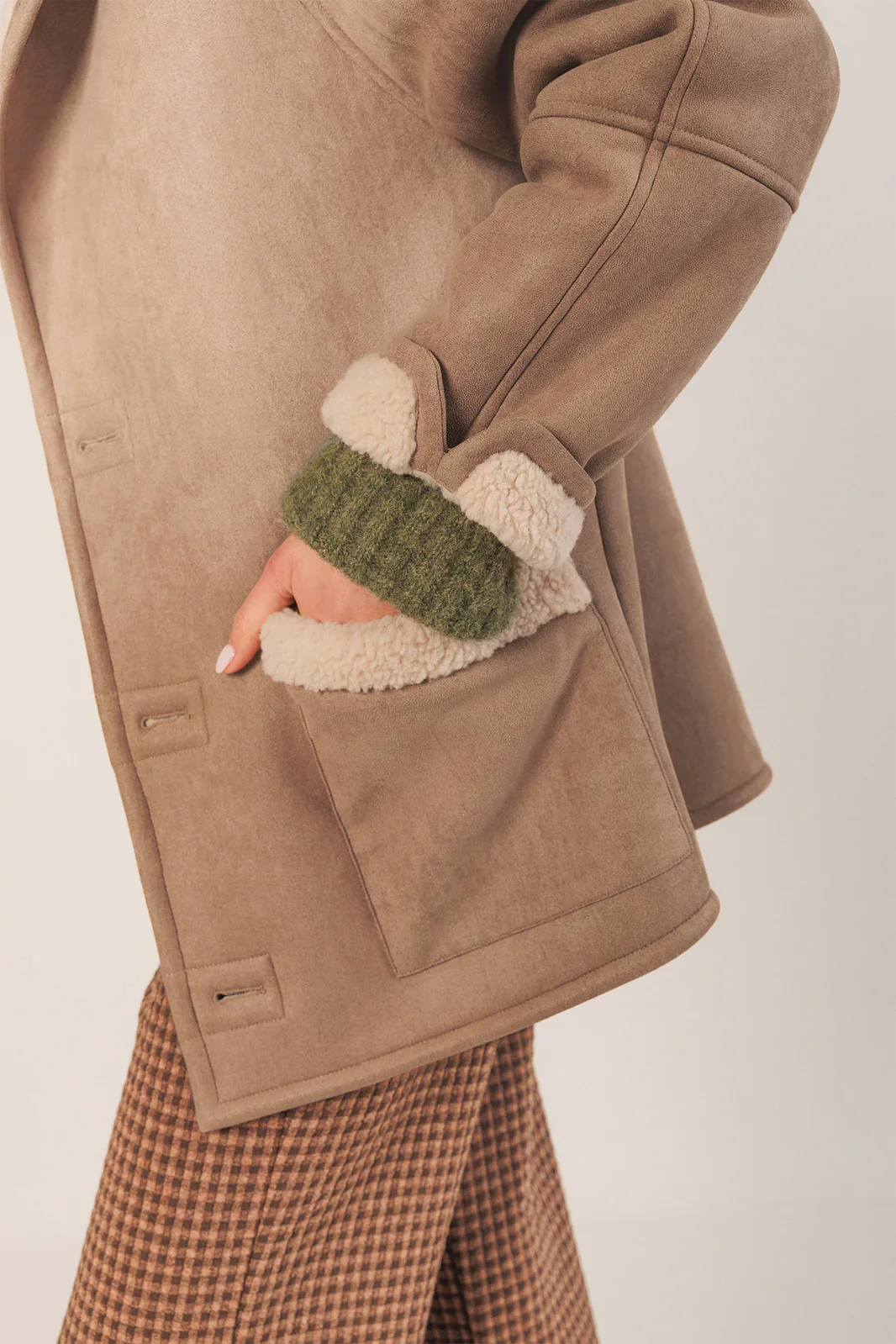 - Cierre frontal abotonado y bolsillos de parche vuelto con efecto teddy