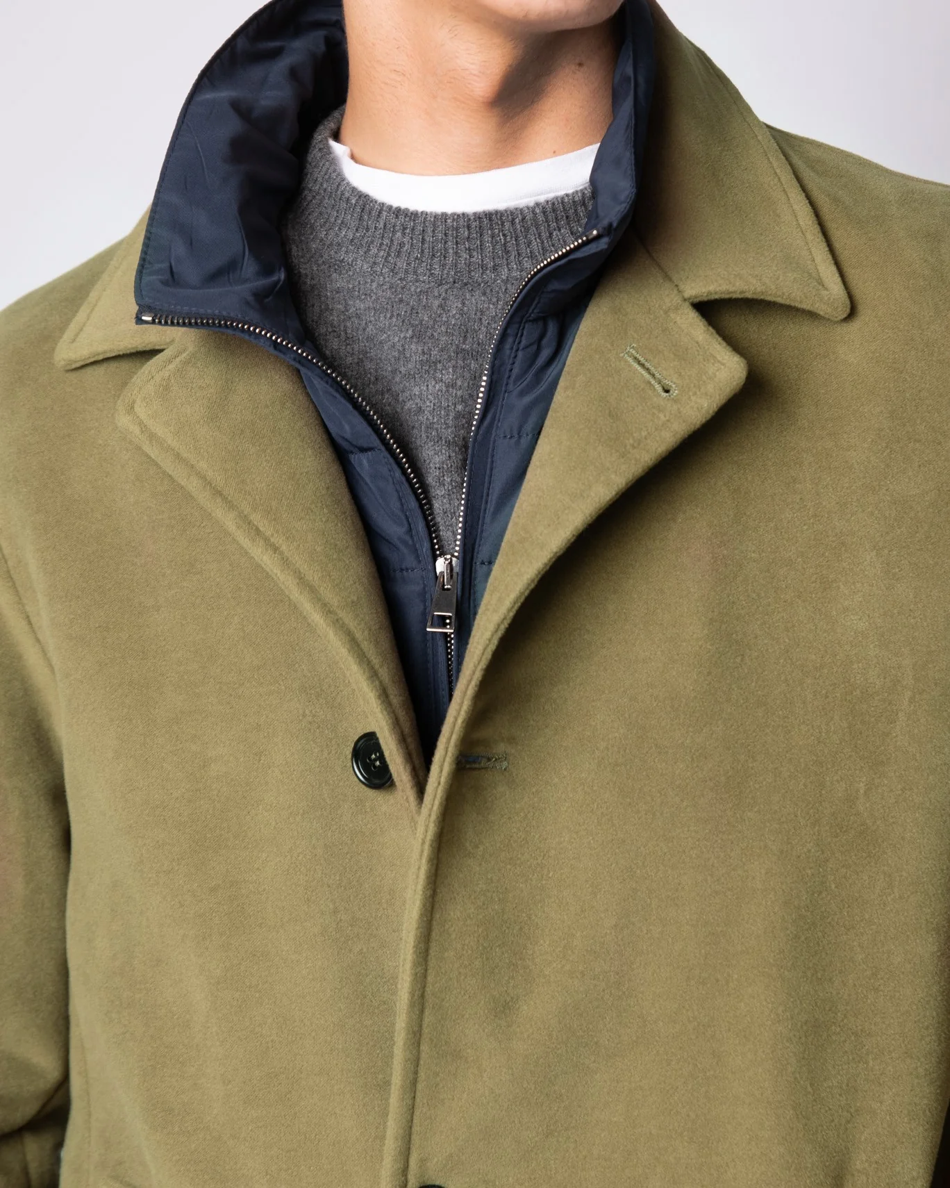 Abrigo de la firma italiana Valstar, confeccionado en pura lana virgen con un patrón de sarga rota.