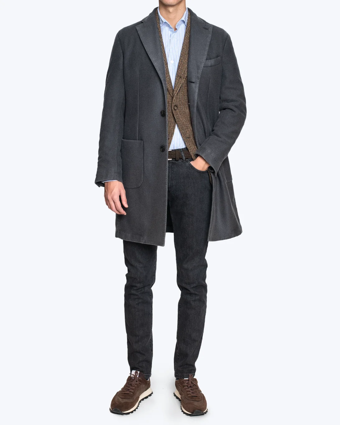 Dispone de un cierre frontal de tres botones, dos bolsillos delanteros de plastrón, y uno a la altura del pecho. En el interior, cuenta con dos bolsillos adicionales, perfectos para guardar objetos de valor. Las mangas rematan con puños de cuatro botones.