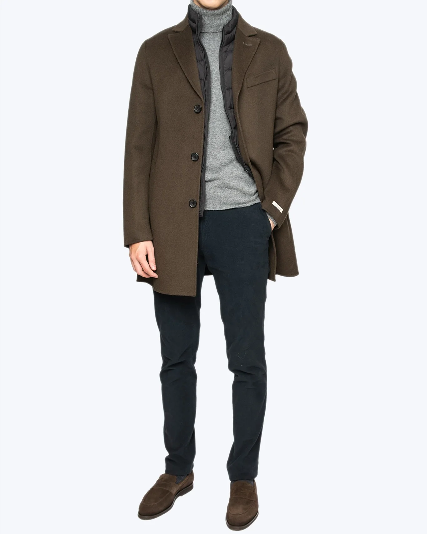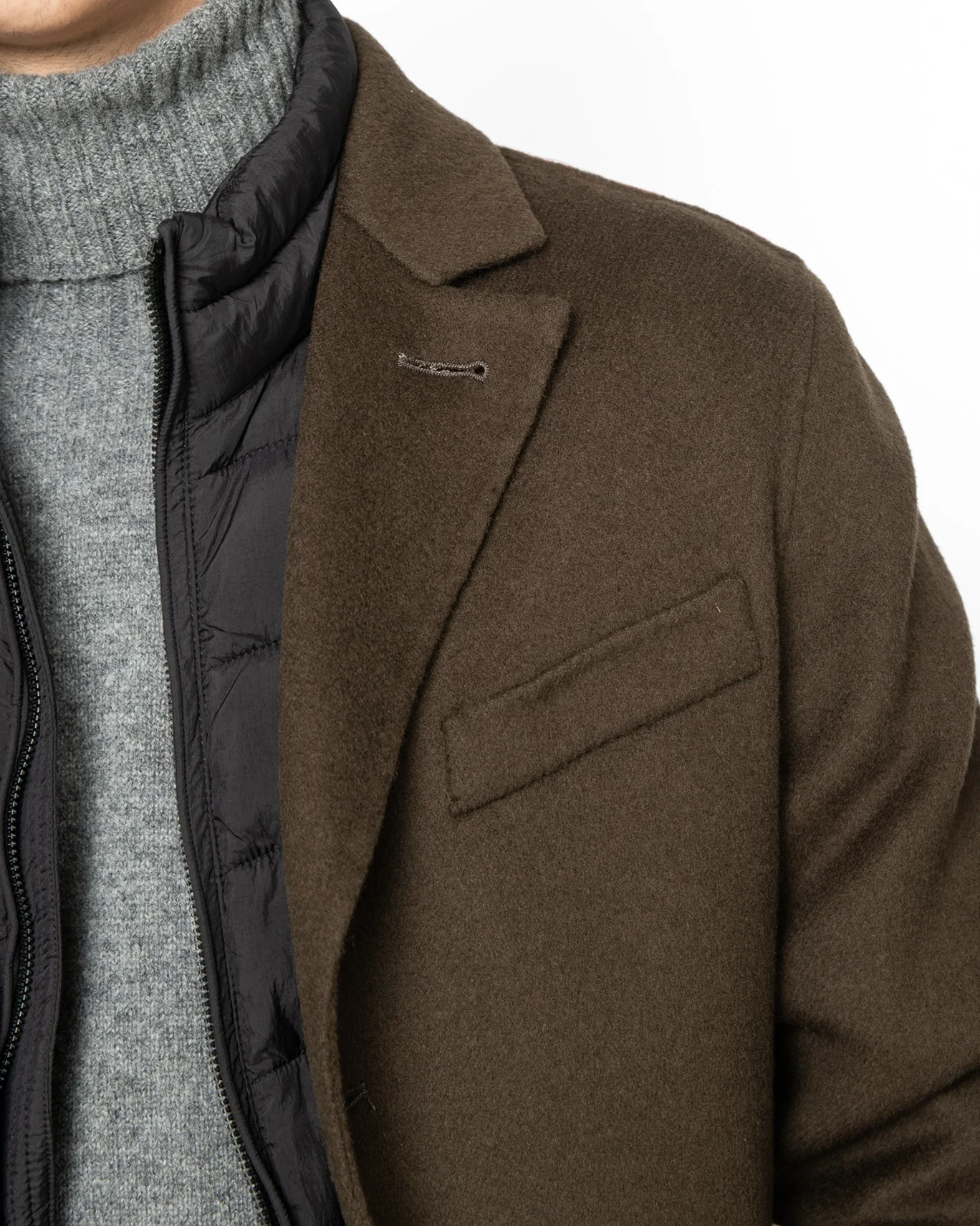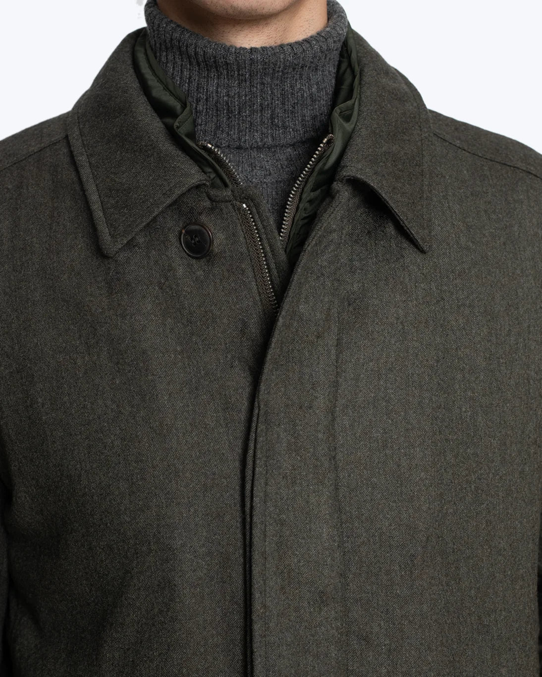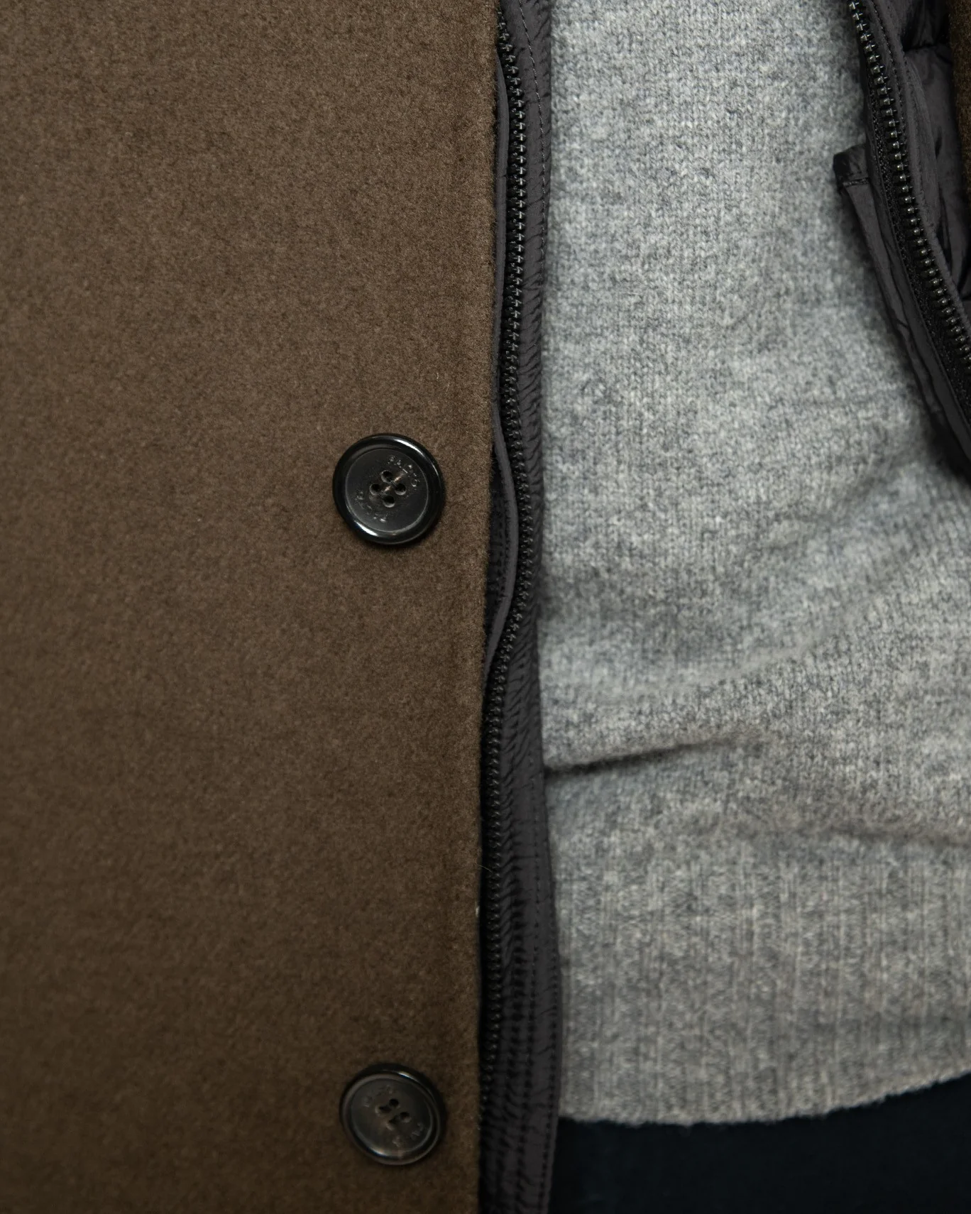 Se abrocha con tres botones, y tiene tapetas acolchadas extraíbles (mediante cremallera), así como un forro acolchado, que le aportan un extra de abrigo y aislamiento del viento. De las tapetas del cuello, mediante una cremallera, se extrae una capucha oculta.