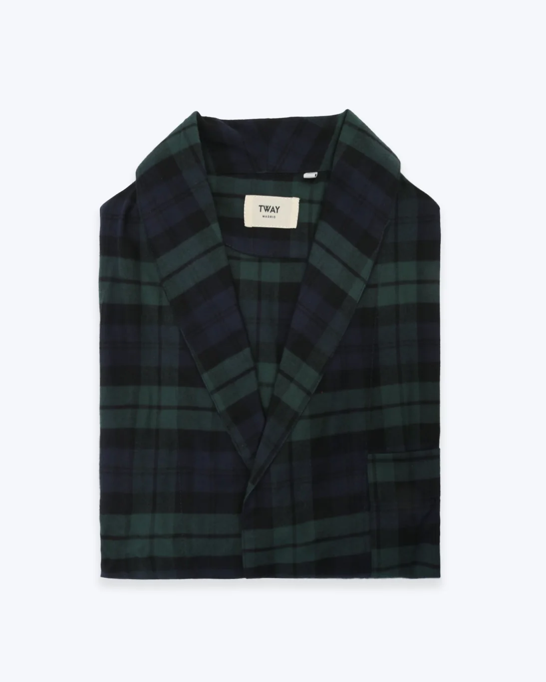 Bata de cuadros verdes y azules, de la marca Fulham.