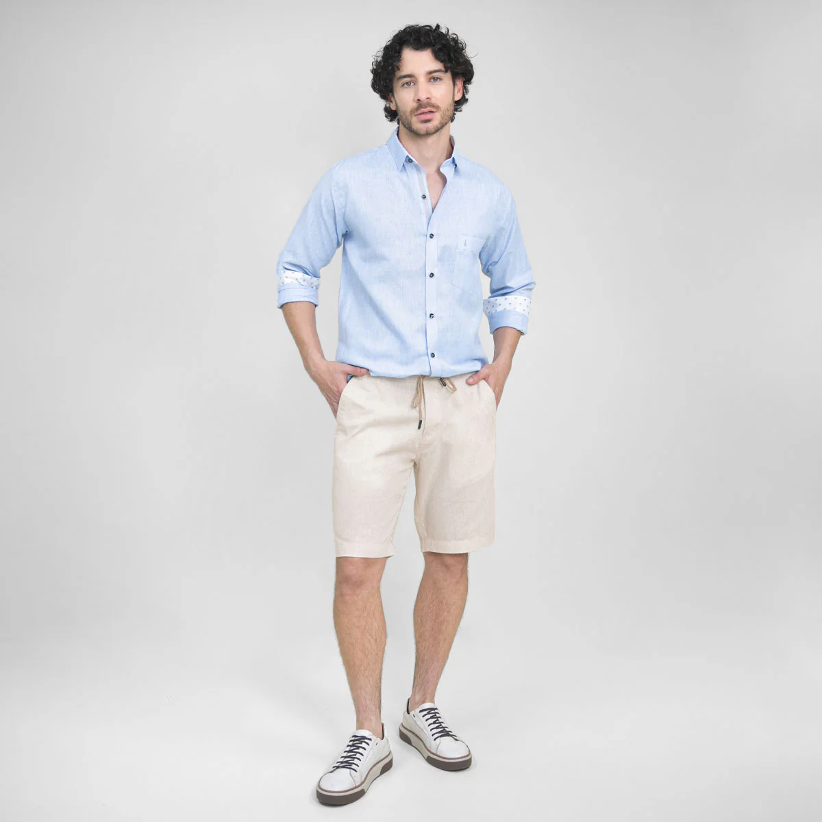 Descubre la bermuda regular en beige claro, diseñada para ofrecer comodidad y estilo en climas cálidos. Confeccionada en una mezcla de lino (33%), rayon (16%) y poliéster (51%), esta bermuda garantiza frescura y durabilidad para el uso diario.
