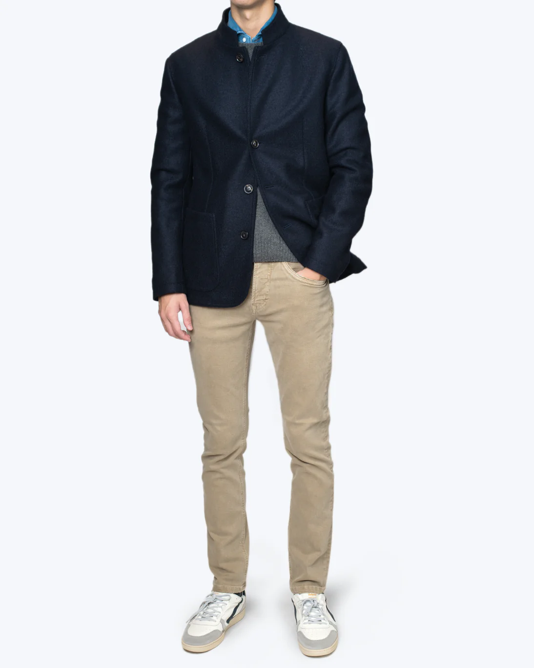 Blazer azul de la marca Maximilian, con una confección impecable elaborada en lana vergine de alta calidad.