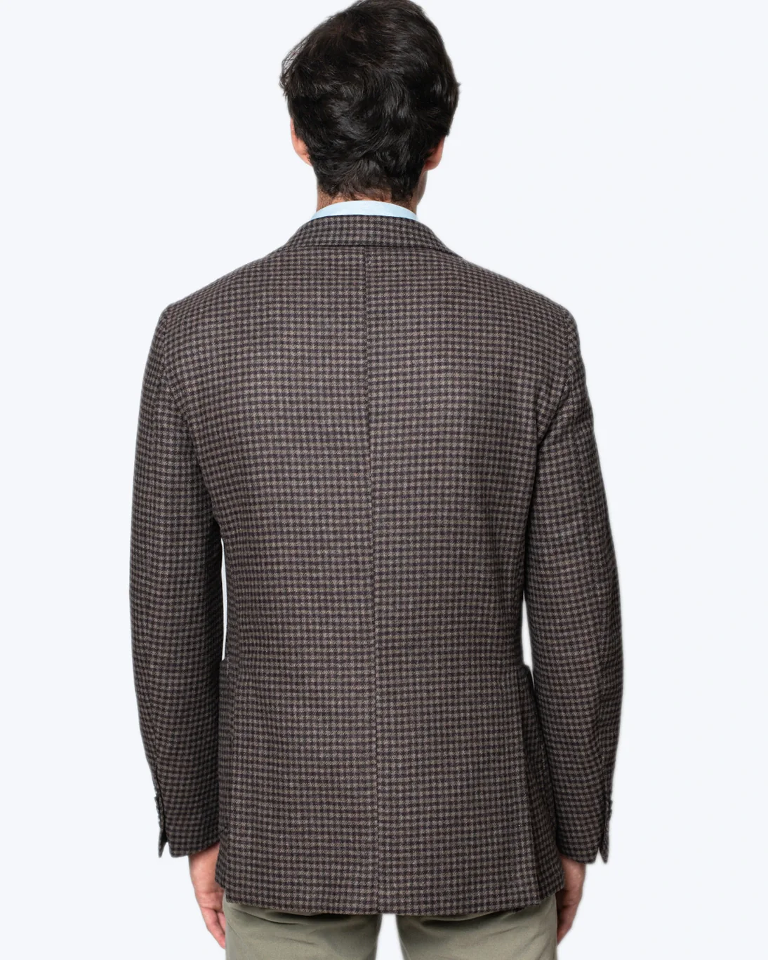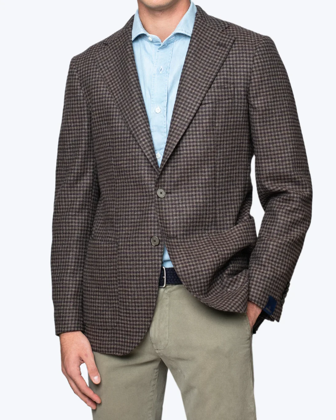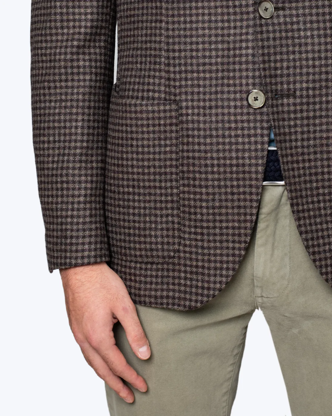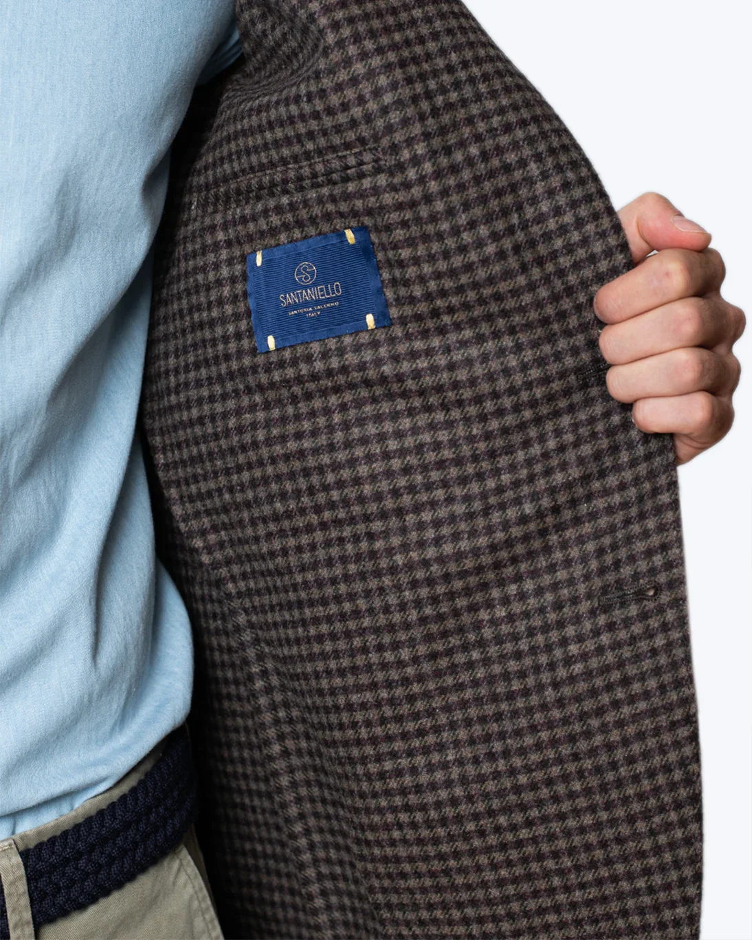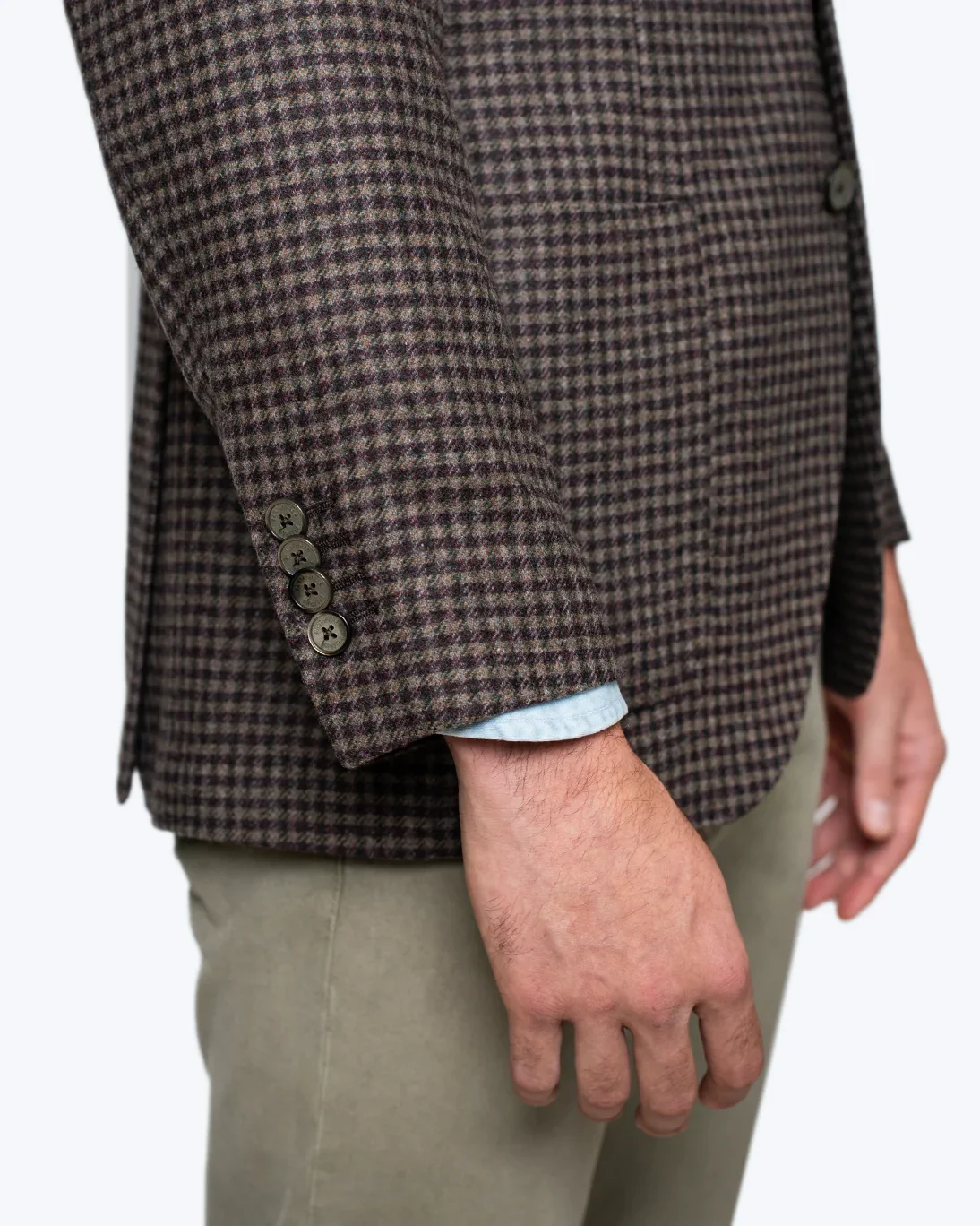 Blazer con estampado de pata de gallo en color burdeos y marrón, de la marca Santaniello.