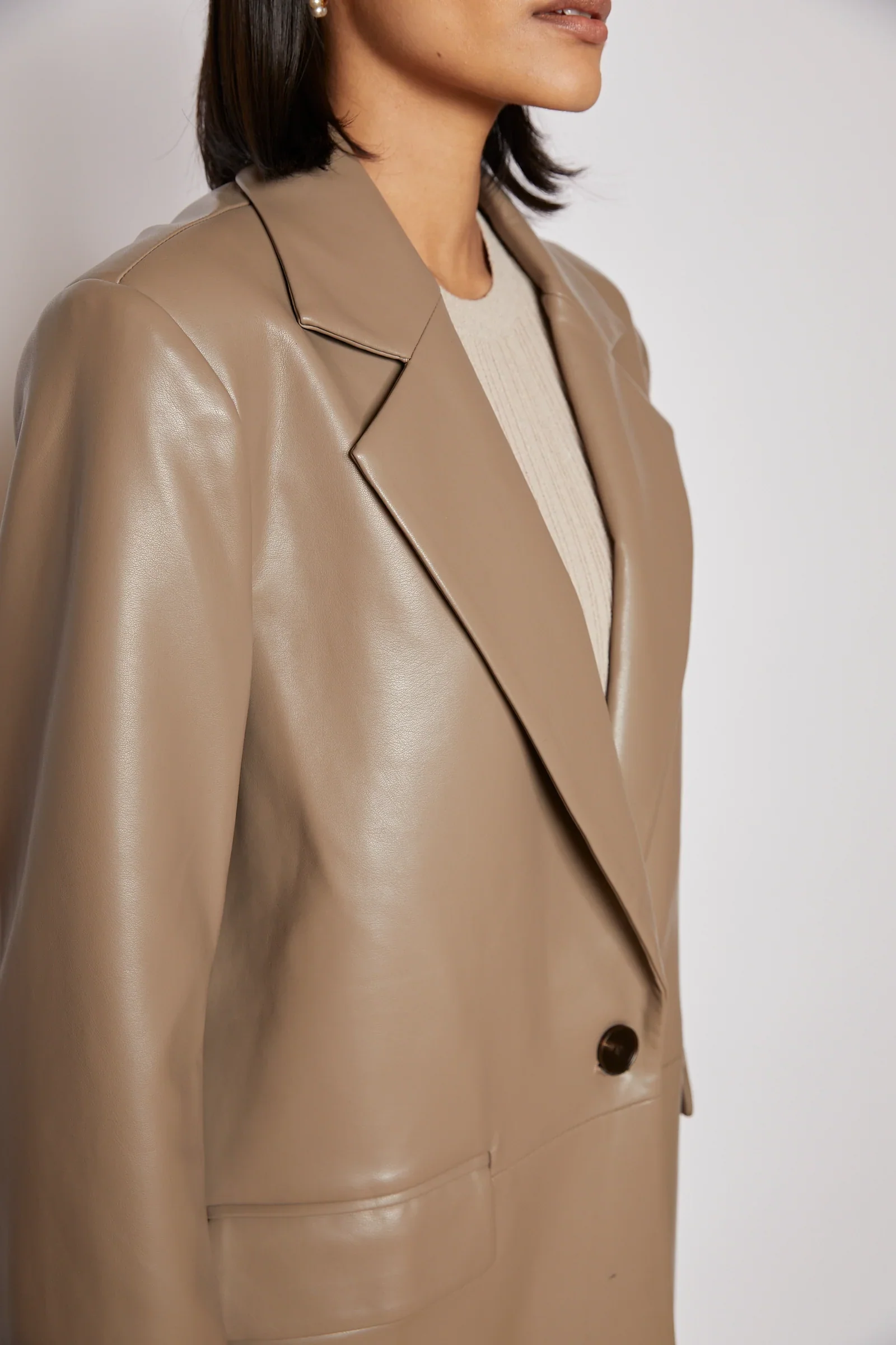 Mejora tu guardarropa con la chaqueta NOEL, que presenta un elegante diseño tipo blazer confeccionado con material de PU suave y duradero. El largo más largo añade un toque de sofisticación, creando el conjunto perfecto cuando se combina con nuestra falda Smith. Adopte un estilo atrevido pero elegante con esta pieza imprescindible.