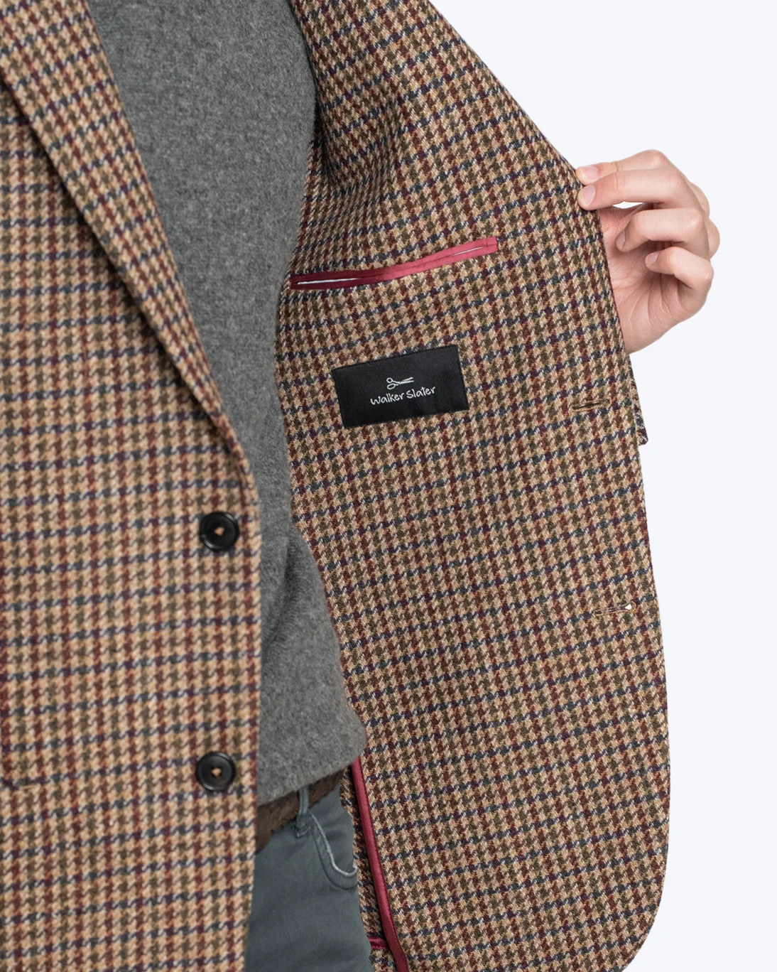 Blazer de pura lana virgen, con estampado de pata de gallo, de la marca Walker Salter.