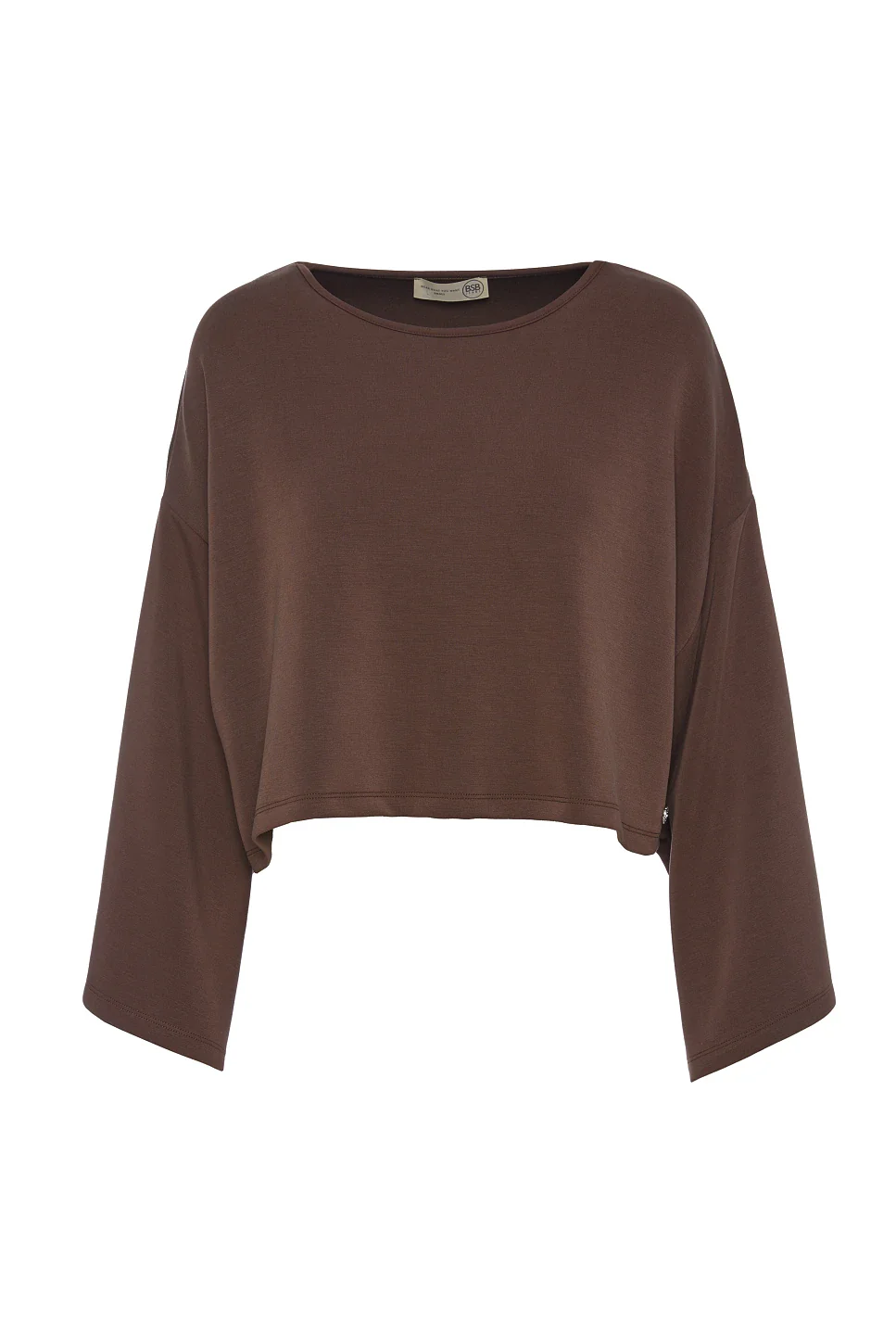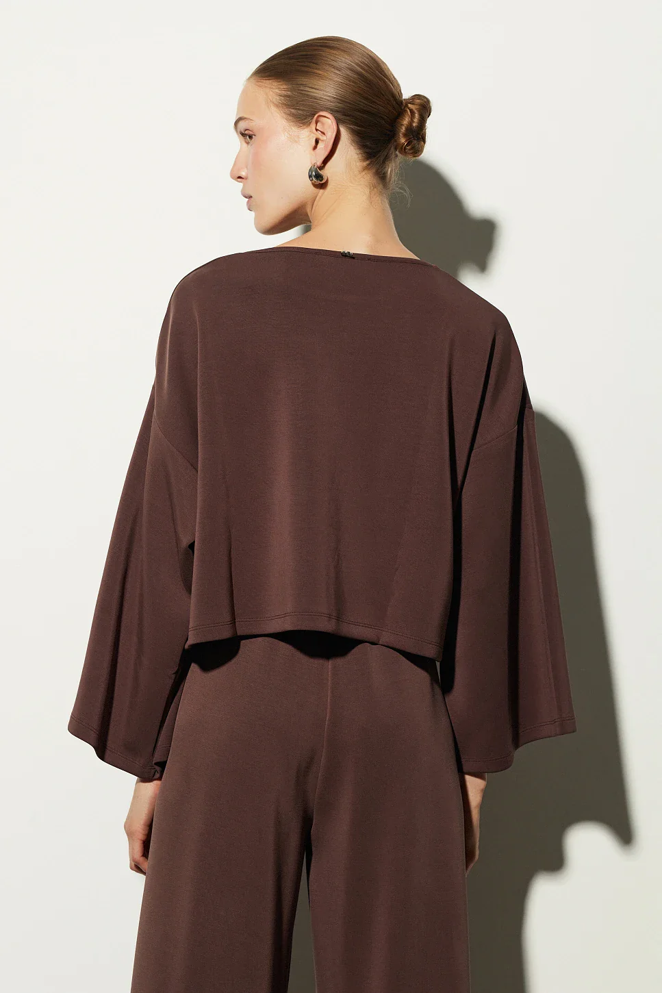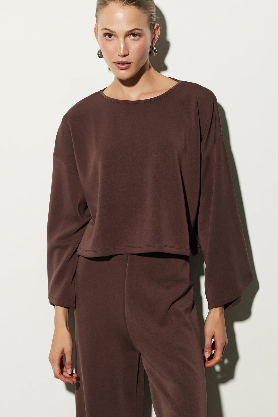 Blusa, con mangas largas, mangas anchas, escote redondo, corte regular, tacto suave.