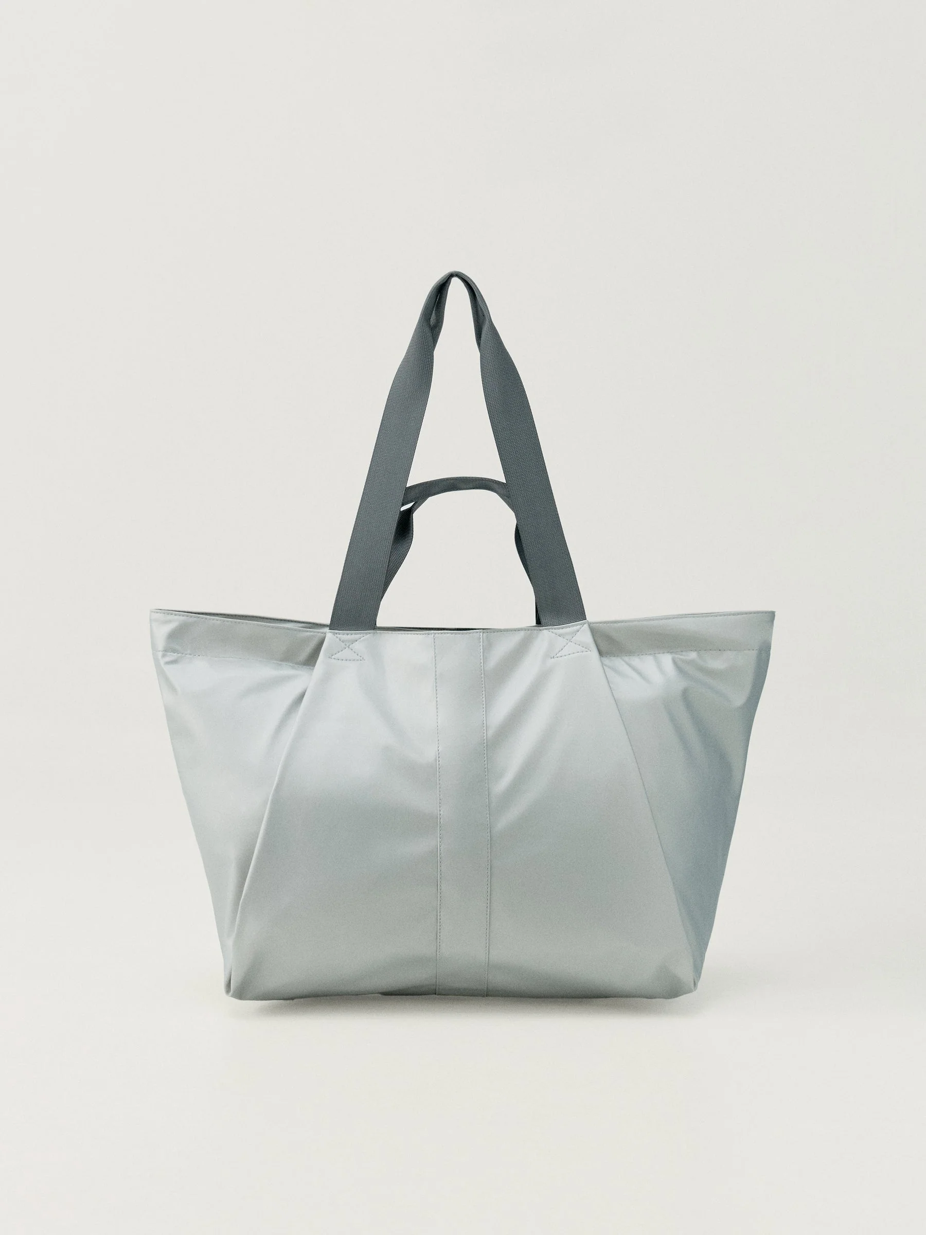 Bolso shopper. Tejido repelente al agua y acabado metalizado. Cierre principal con cremallera y asas anchas muy cómodas. Tiene amplios bolsillos interiores para mayor comodidad. Logo estampado. Elige llevarlo en la mano o al hombro. Medidas: