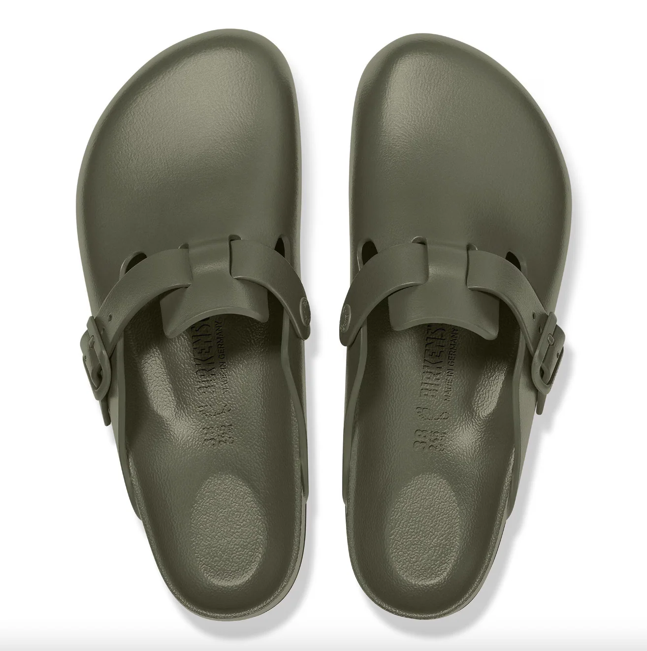 El modelo Boston de BIRKENSTOCK es un auténtico clásico que se puede llevar sin problema durante todo el año. Con su diseño refinado que se puede adaptar individualmente, el Boston disfruta desde hace tiempo de un estatus de leyenda. Inspirado en la sandalia de corcho, este modelo está hecho con material EVA, muy ligero y flexible. EVA es un material plástico de alta calidad, no tiene olor ni sustancias contaminantes y reúne muchas características positivas: es muy ligero, de alta elasticidad, amortigua los golpes, impermeable y es respetuoso con la piel.