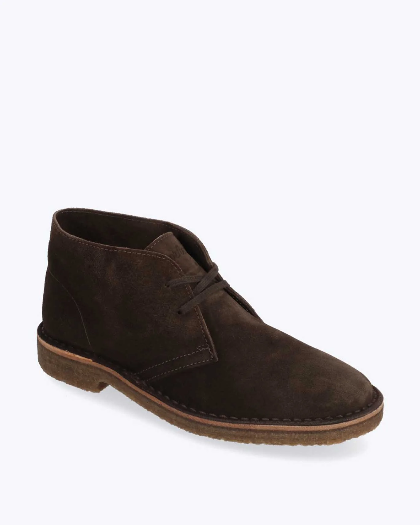 Botas de la marca Astorflex 1820, de ante marrón oscuro y suela de caucho.