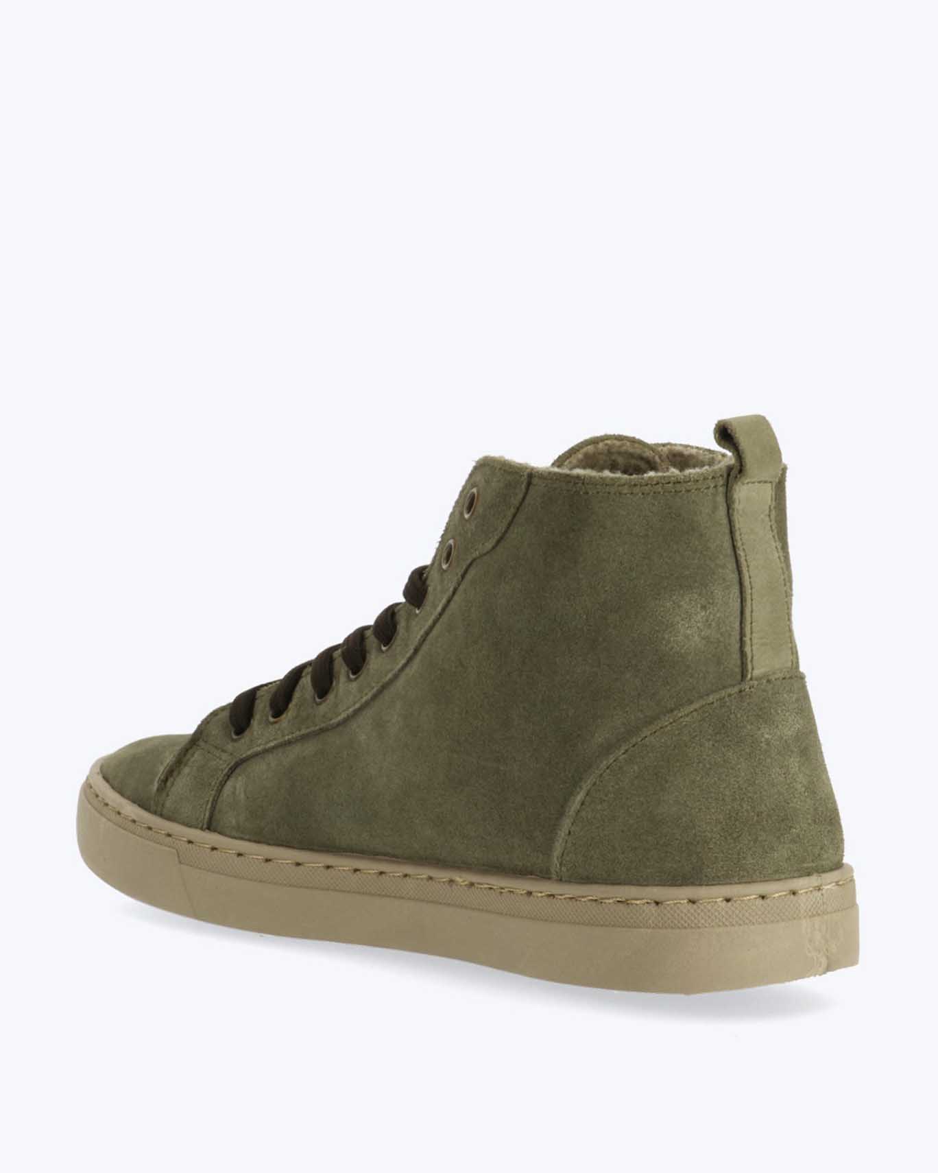 Botas de la marca Natural World, de ante verde y forradas de lana.