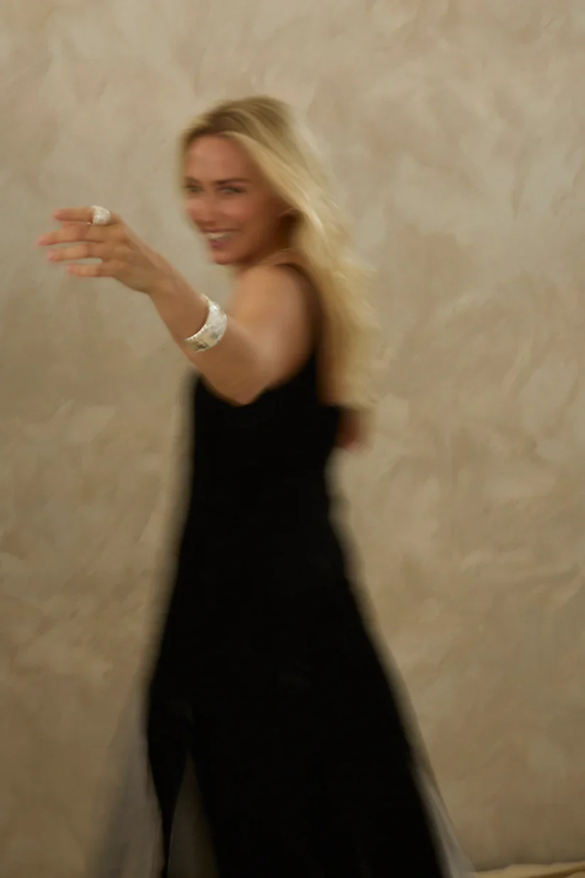 Brazalete elaborado en latón de alta calidad, bañado en plata para un acabado brillante y duradero.