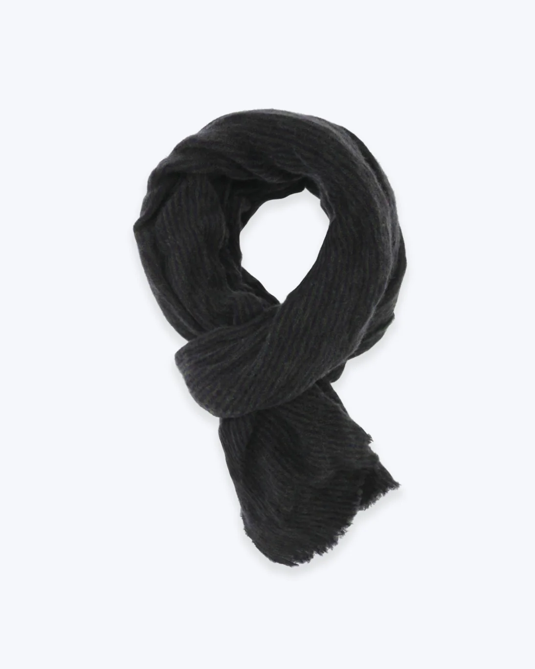 Bufanda de cashmere, de rayas finas verdes y azules, de la marca Botto Guiseppe.
