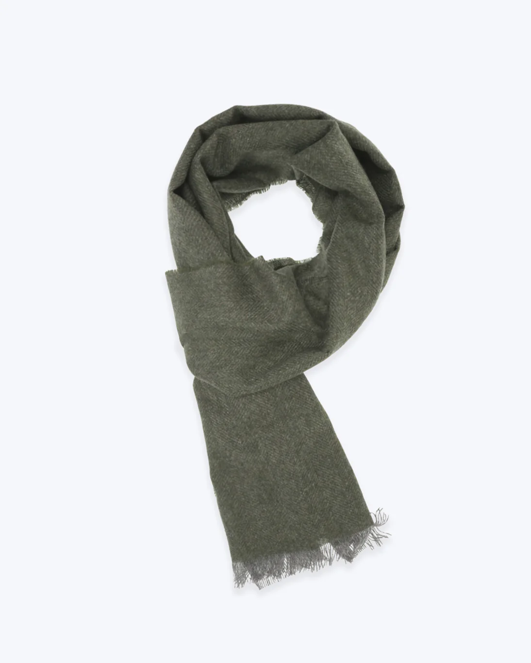 Bufanda de espiga verde y gris, de la marca Fulham, acabada en flecos.