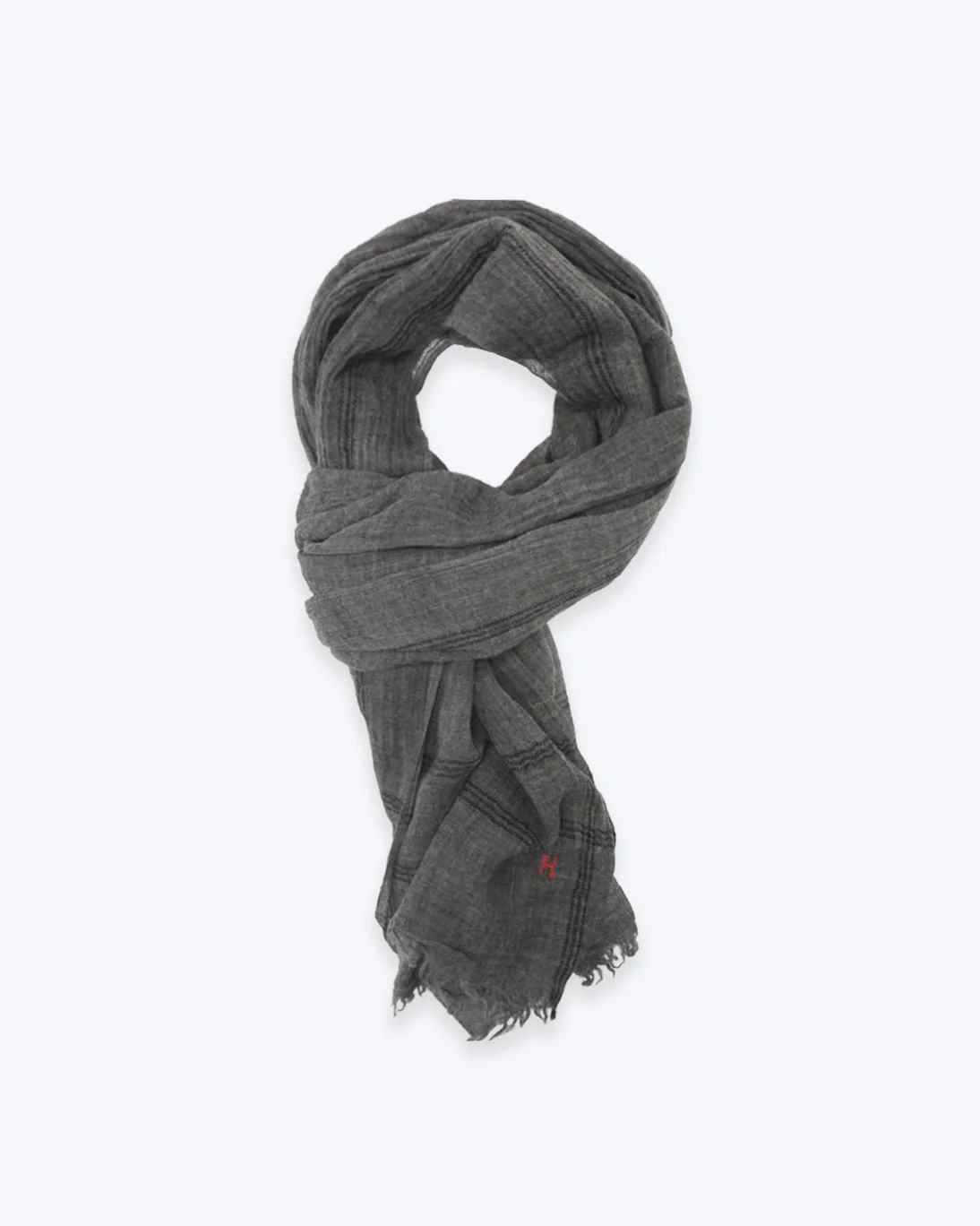 Bufanda de lana, de color gris con cuadros gris oscuro, de la marca Hartford.