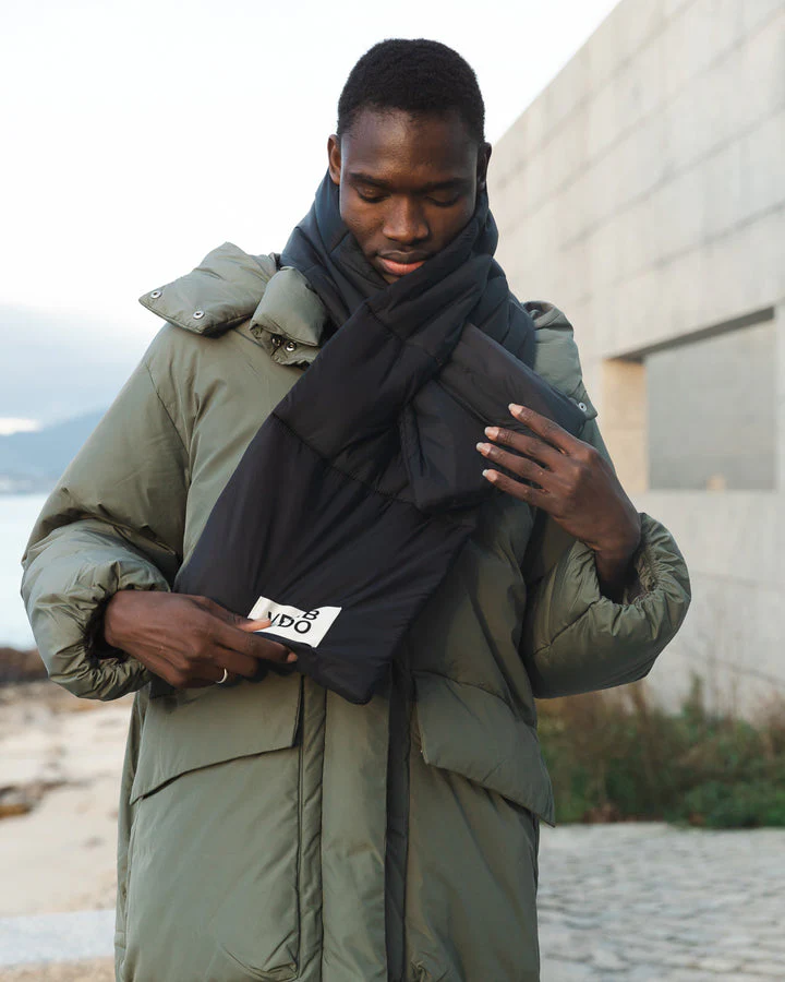 Bufanda topo de la marca Fulham, acabada en flecos pequeños.