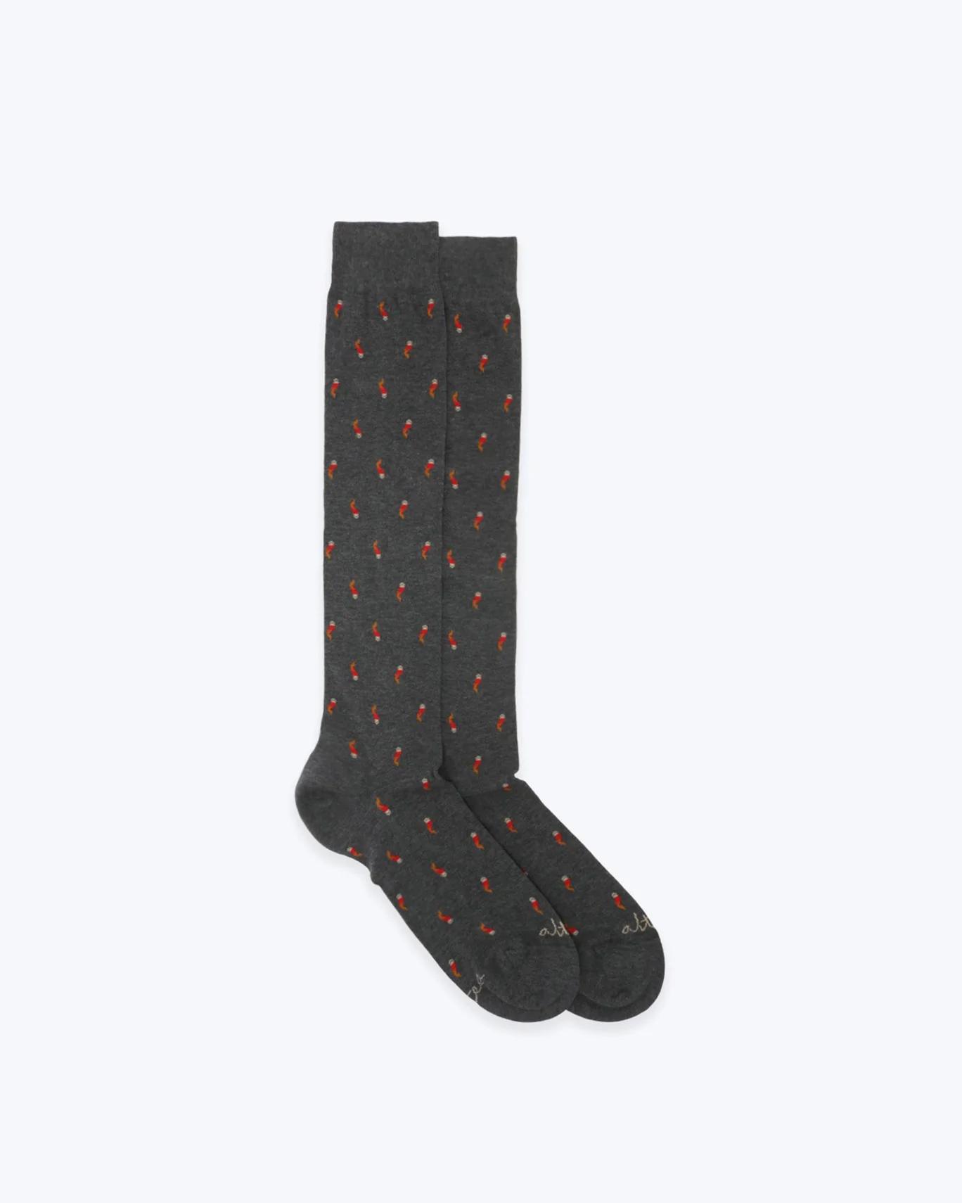 Calcetines de caña alta color gris con con estampado de chili, de la marca Altea.