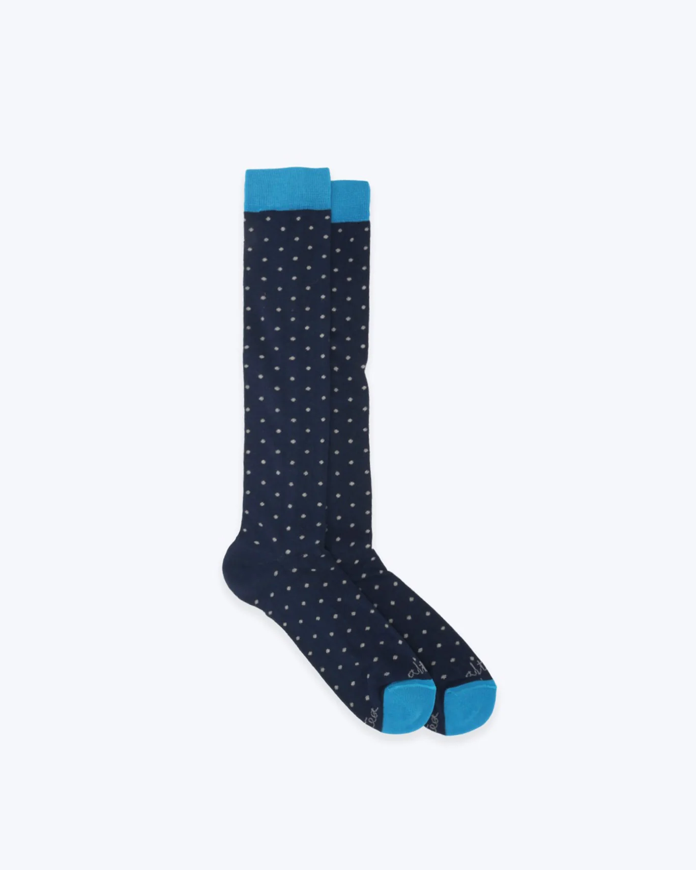 Calcetines de la marca Altea en azul con topos en gris.