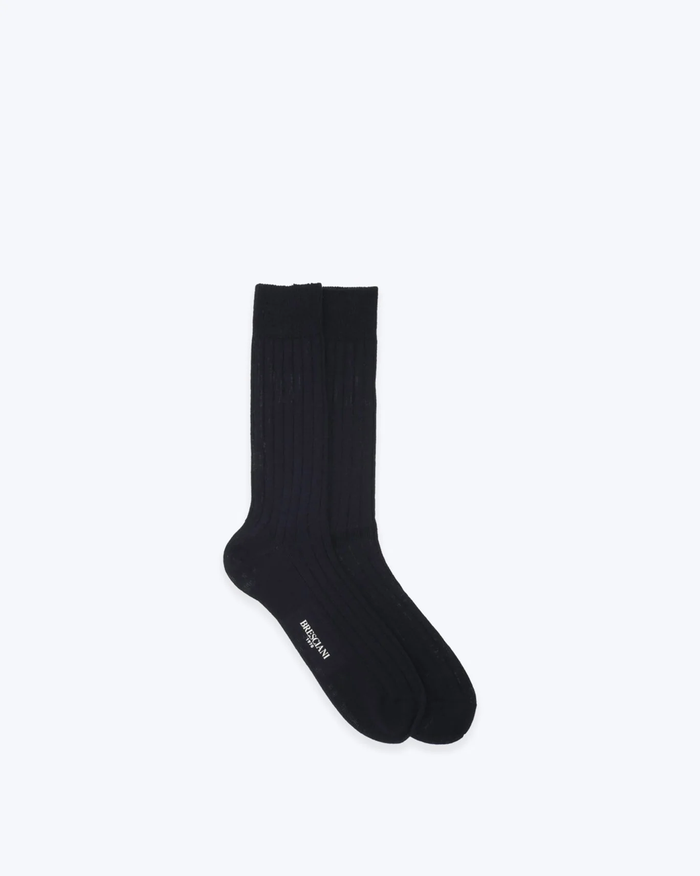 Calcetines de canalé, caña corta en color azul de la marca Bresciani. Confeccionados en lana.