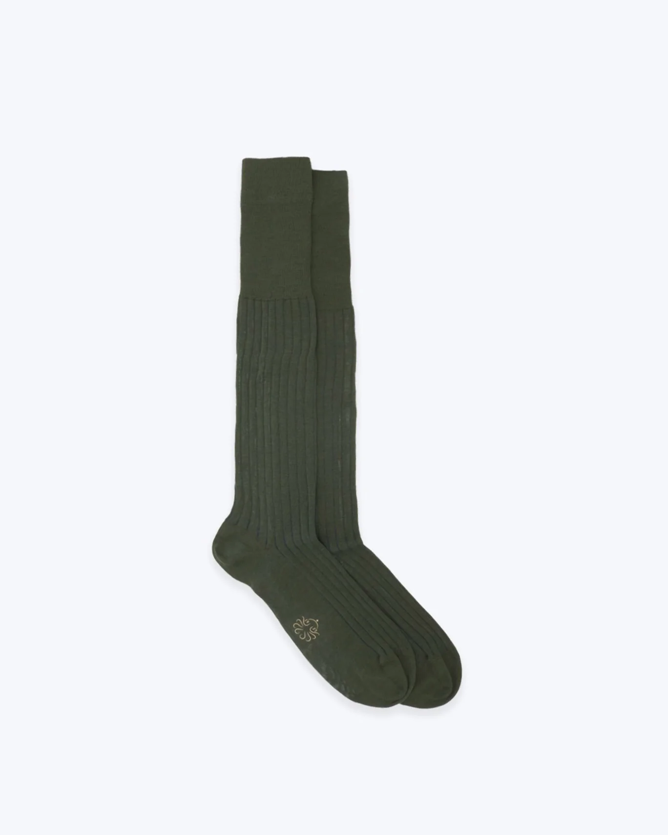 Calcetines de caña alta, color verde de la marca Alto Milano. Confeccionados en lana y algodón. La abertura del canalé es color azul.