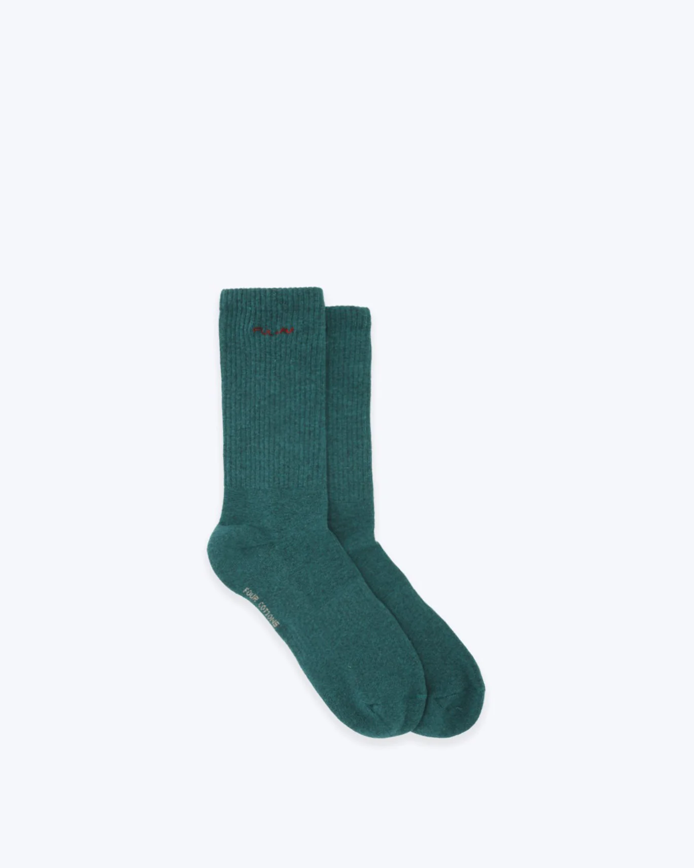 Calcetines de golf, de caña media, marca Fulham. Confeccionados en algodón. Color verde campo con letras bordadas en la caña en color rojo.