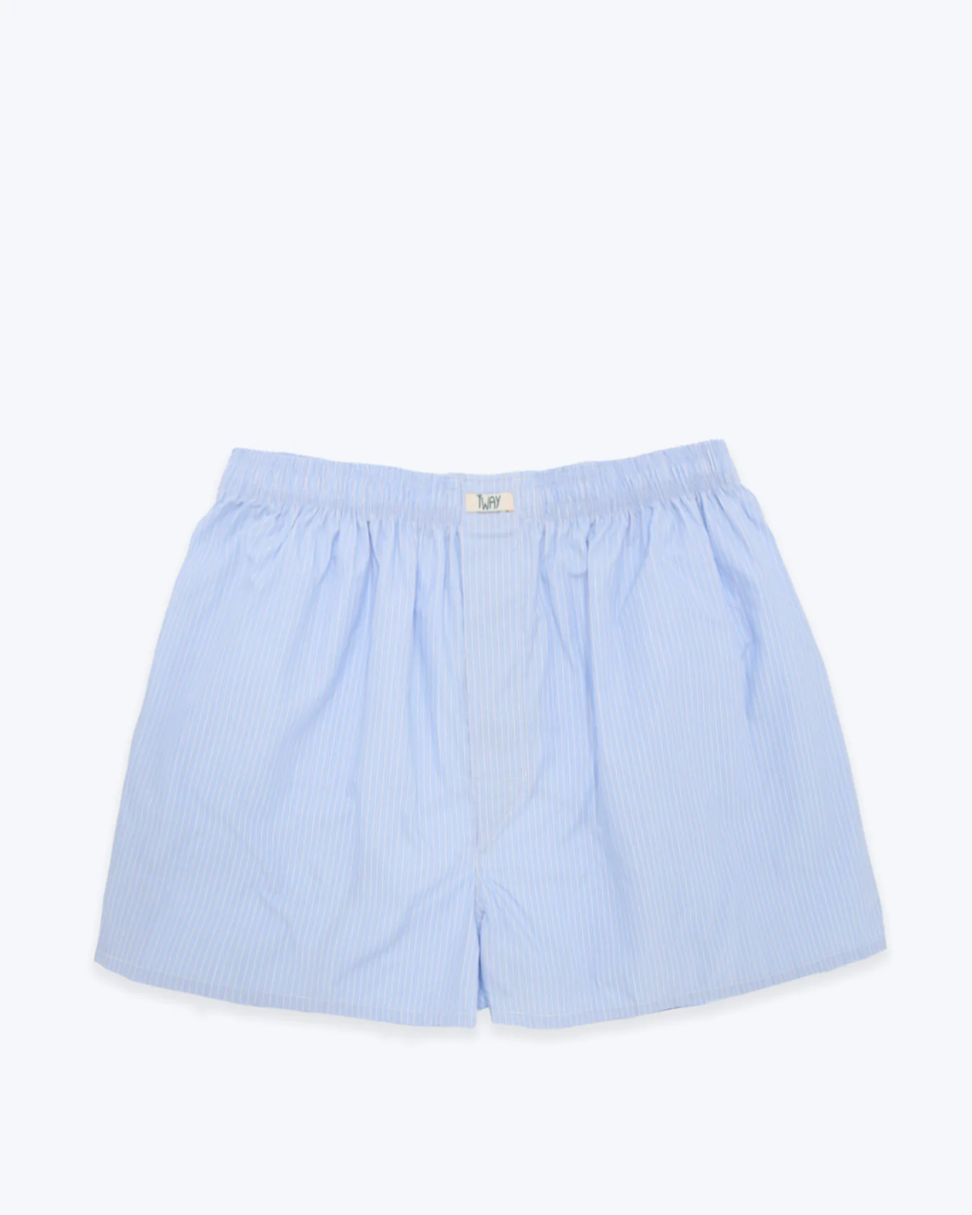 Calzoncillos de la marca Tway de color azul claro con franjas blancas.