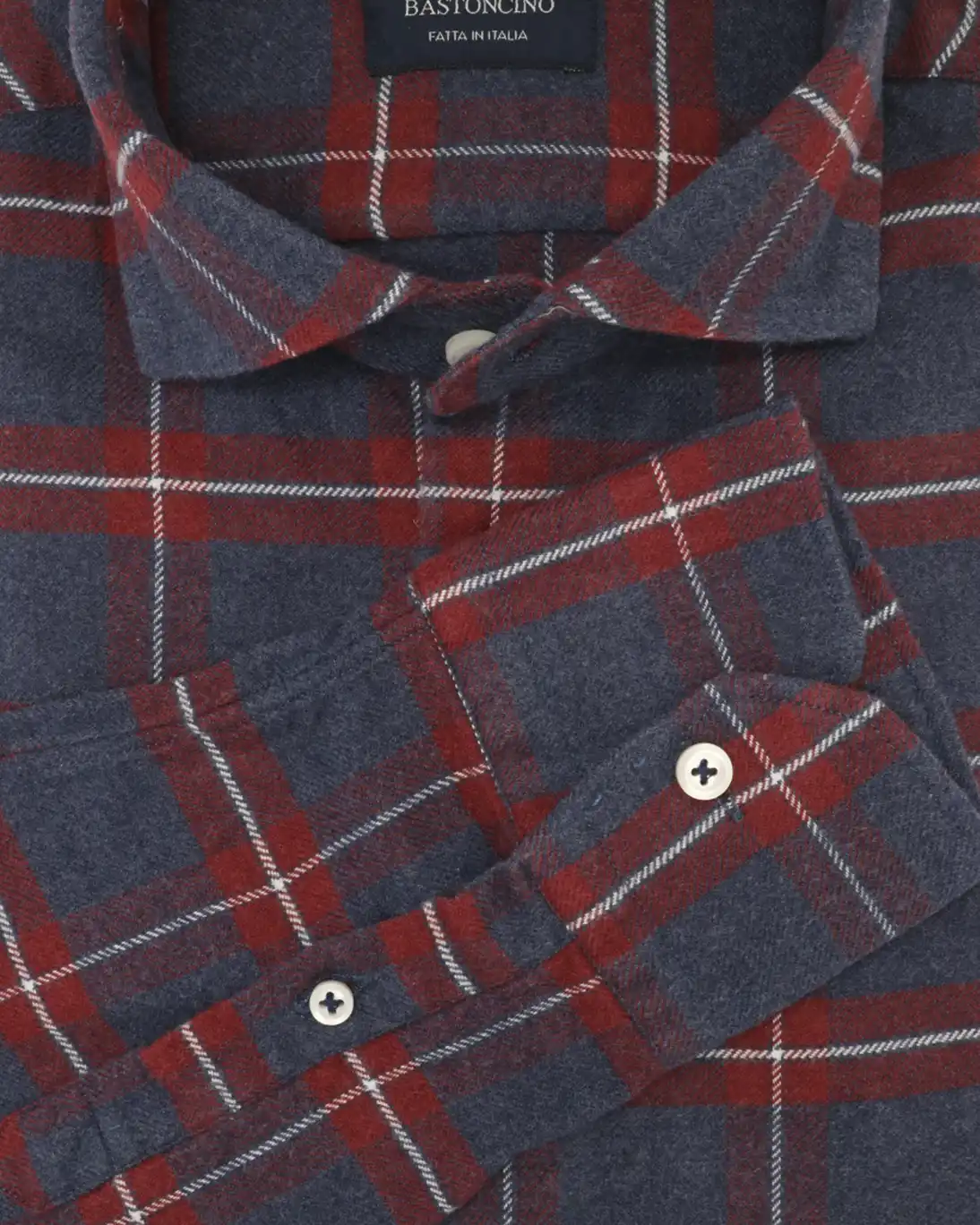 Manga larga acaba en puños con dos botones, cuello cutaway y corte regular.