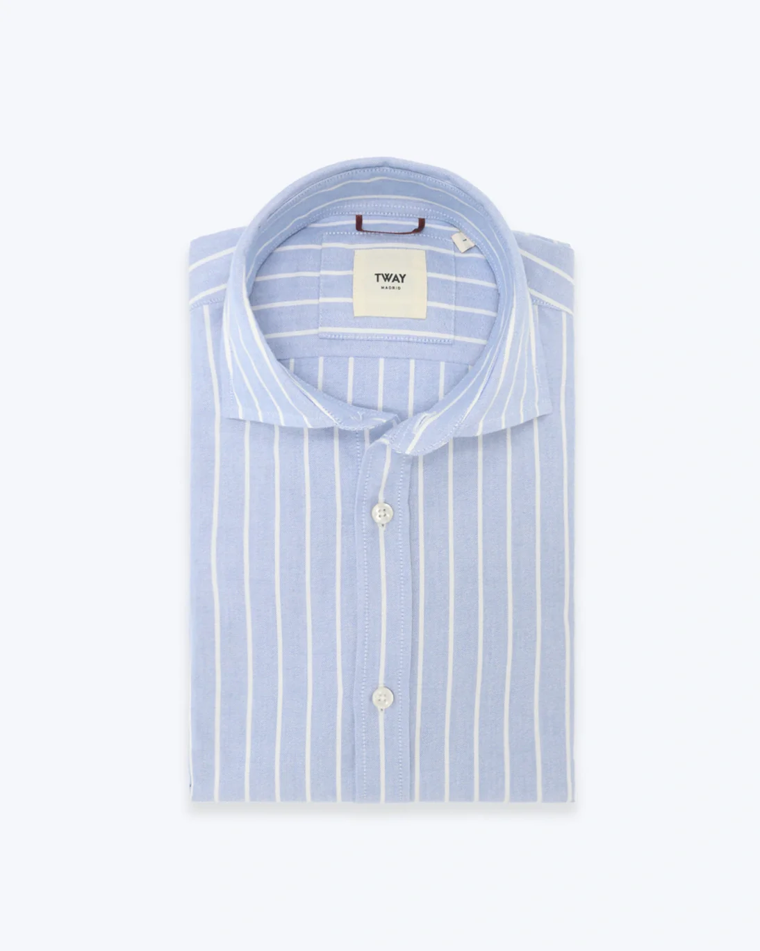 Camisa de color azul, de rayas blancas, de la marca Tway.