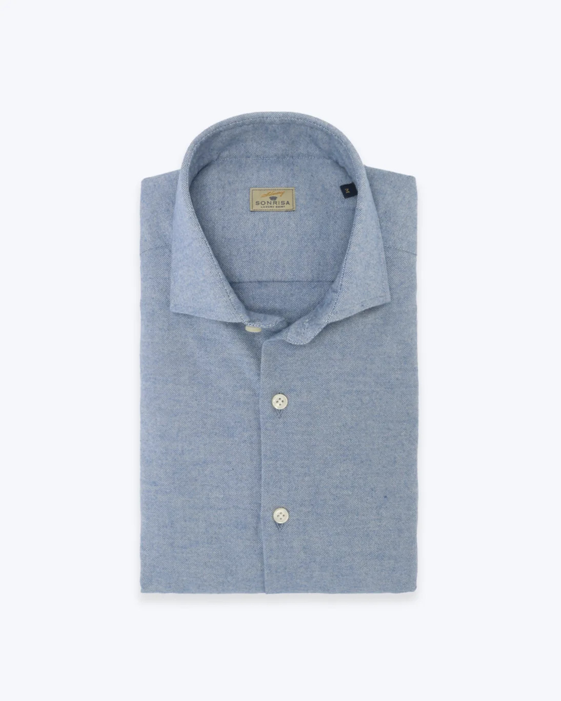 Camisa de la línea Luxury de la marca Sonrisa, confeccionada en tono azul y elaborada íntegramente en suave franela de 100% algodón, lo que garantiza una sensación de calidez y suavidad, especialmente indicada para los meses más fríos del año.