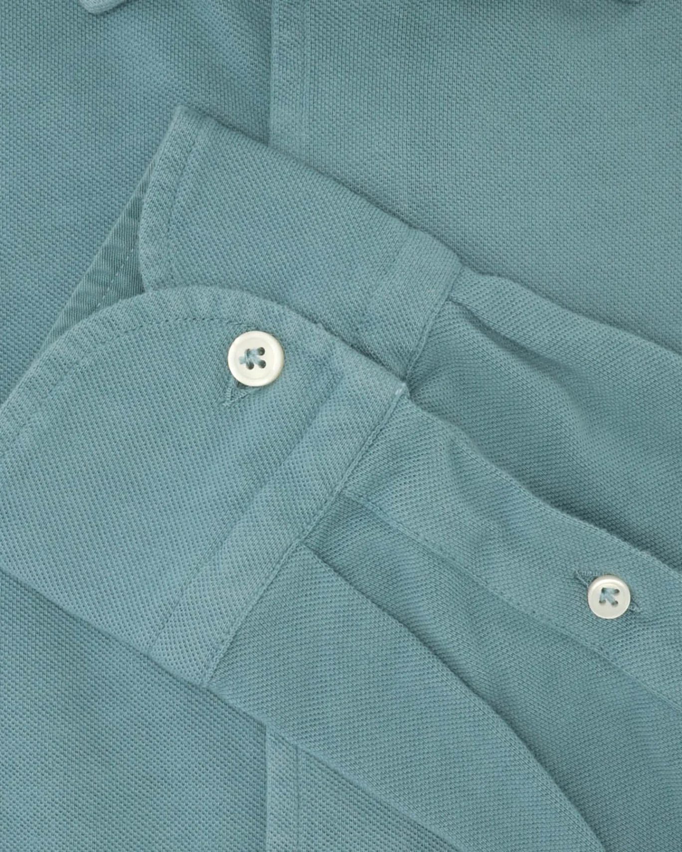 Incorpora un cuello cutaway y cierre de botones. Además de manga larga acabada en puño con botón.