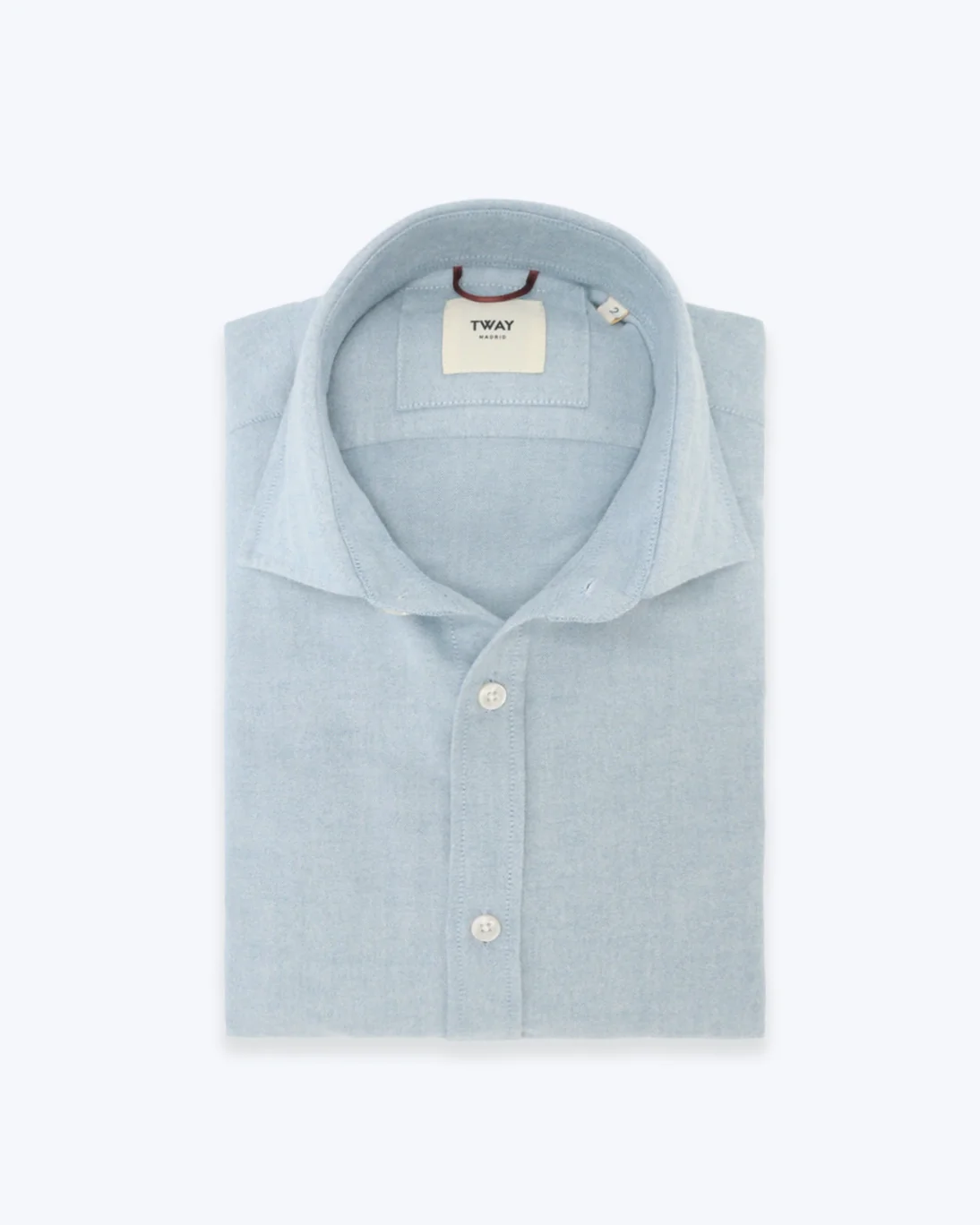 Manga larga acaba en puños con dos botones, cuello cutaway y corte regular.