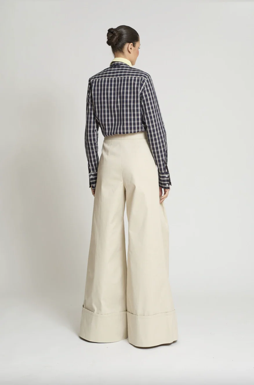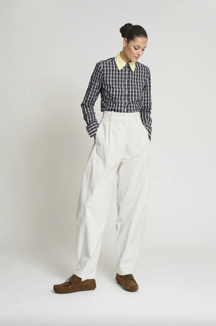 Camisa en cuadros con doble cuello amarillo extraible