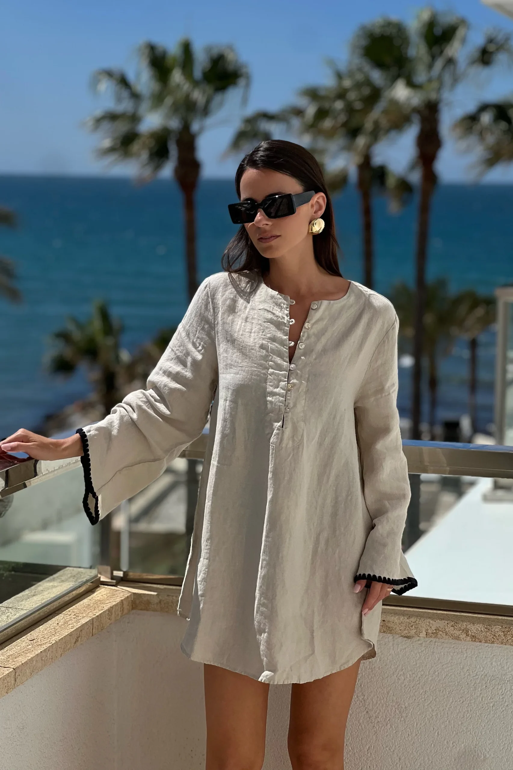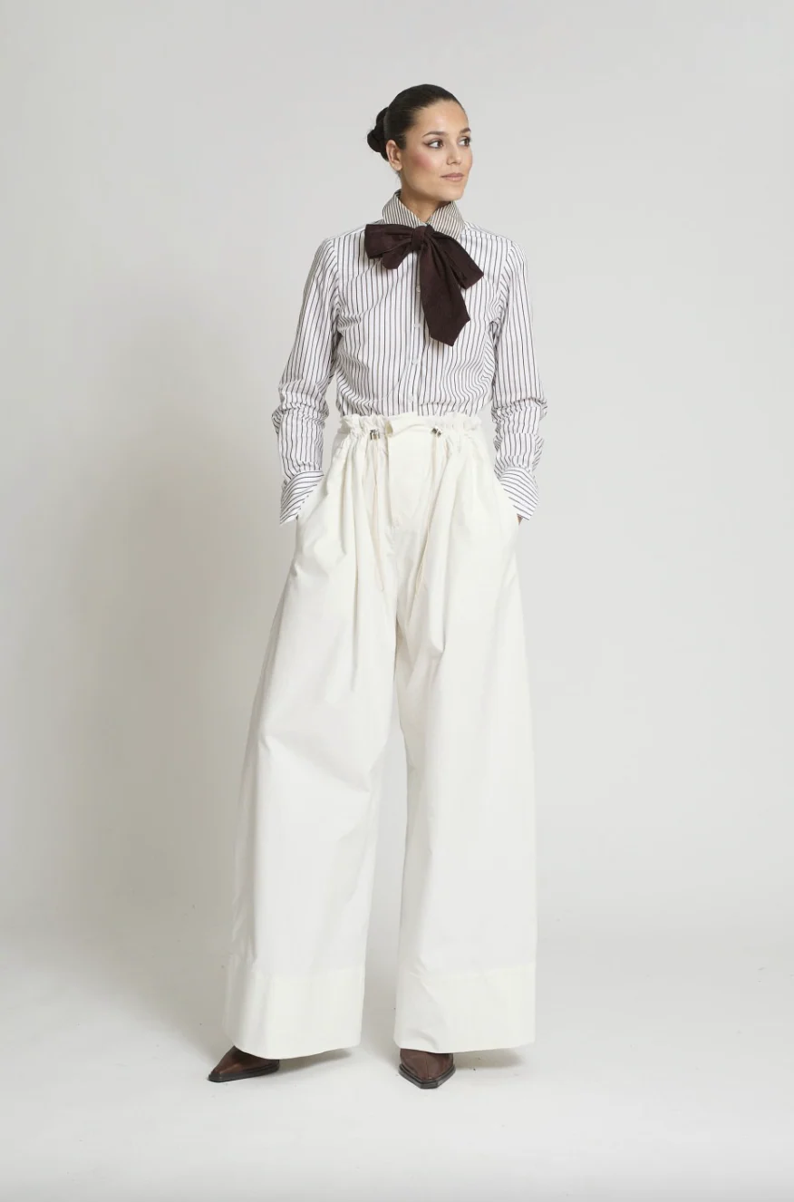 Camisa doble cuello extraíble en rayas combinadas