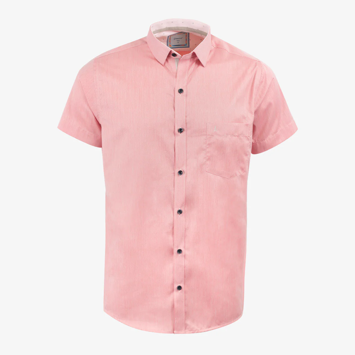 Descubre la camisa custom de manga corta en tono rojo claro, confeccionada con una mezcla equilibrada de poliéster y algodón (50% cada uno) que aporta resistencia, comodidad y frescura durante todo el día.