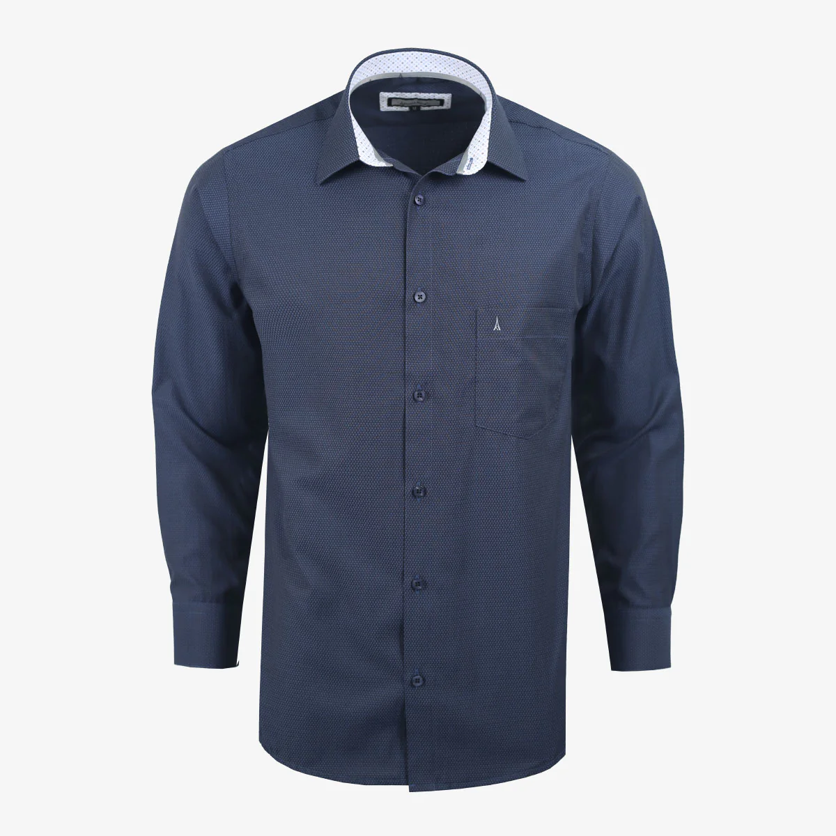 Descubre la camisa Custom de manga larga en un tono azul oscuro profundo con un sutil patrón dobby que aporta textura y personalidad a tu look. Confeccionada en una mezcla de poliéster (55%) y algodón (45%), esta camisa ofrece resistencia y comodidad durante todo el día.