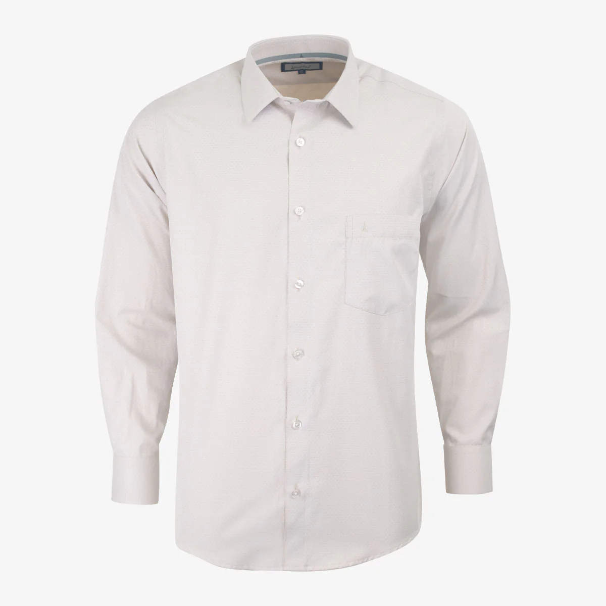 Descubre esta camisa con silueta custom diseñada para brindar un ajuste cómodo y estilizado. Confeccionada en una mezcla de poliéster 55% y algodón 45%, ofrece una textura dobby que aporta un sutil relieve y mayor resistencia al desgaste.